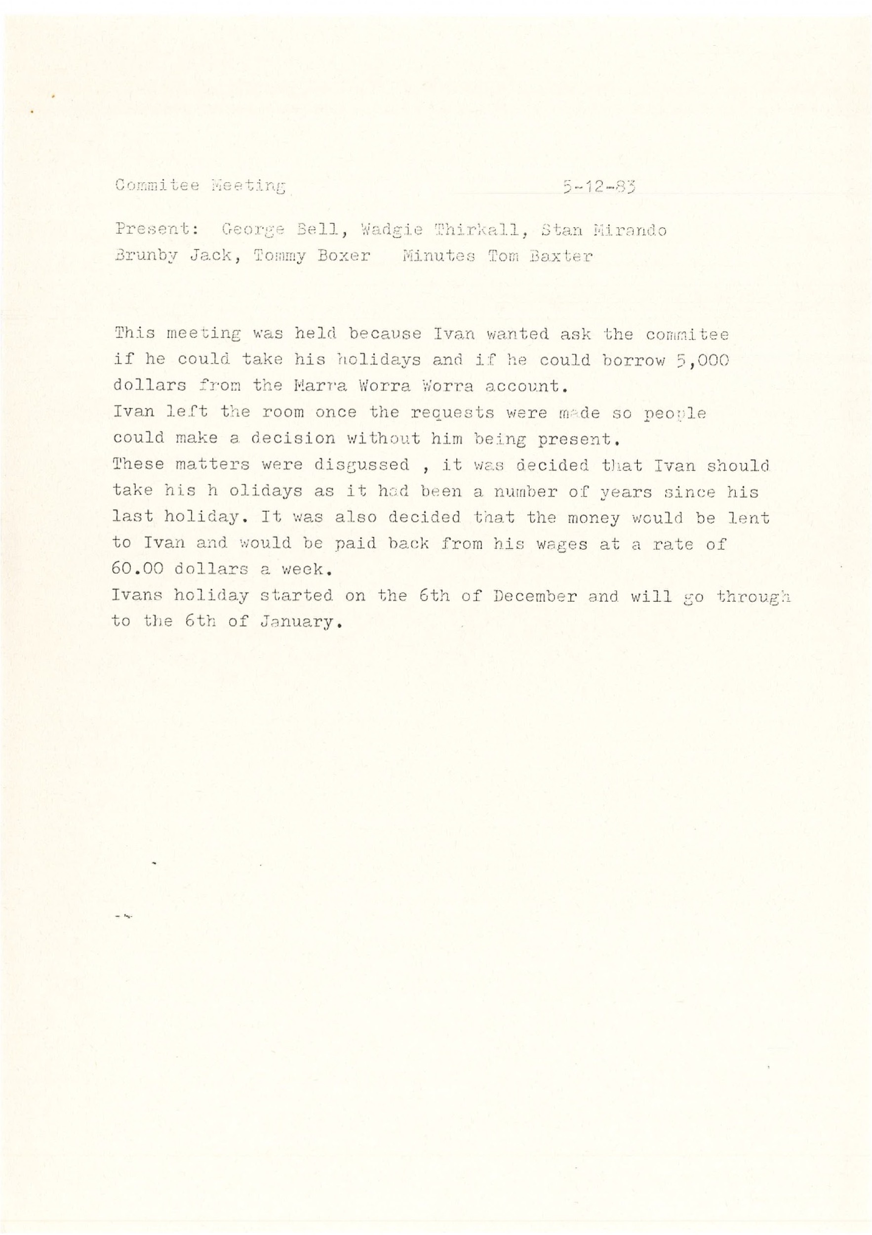 Quote this document 1980-1985 [accessed: 2026/2/5]. "Marra Worra Worra Minutes 1980/1985" (Object Id: 314111). In Marra Worra Worra Minutes 1980/1985. ODSAS: https://www.odsas.net/object/314111.