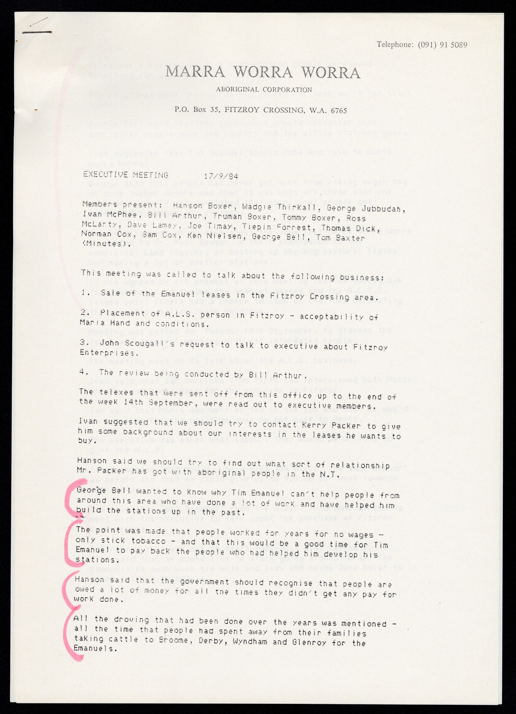 Quote this document 1980-1985 [accessed: 2026/2/5]. "Marra Worra Worra Minutes 1980/1985" (Object Id: 314140). In Marra Worra Worra Minutes 1980/1985. ODSAS: https://www.odsas.net/object/314140.