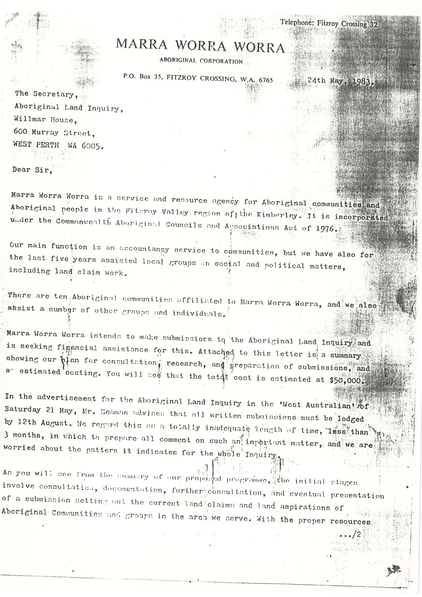 Quote this document 1984-02-06 [accessed: 2026/2/5]. "Marra Worra Worra Submission to Seaman Enquiry " (Object Id: 314308). In Marra Worra Worra Submission to Seaman Enquiry . ODSAS: https://www.odsas.net/object/314308.