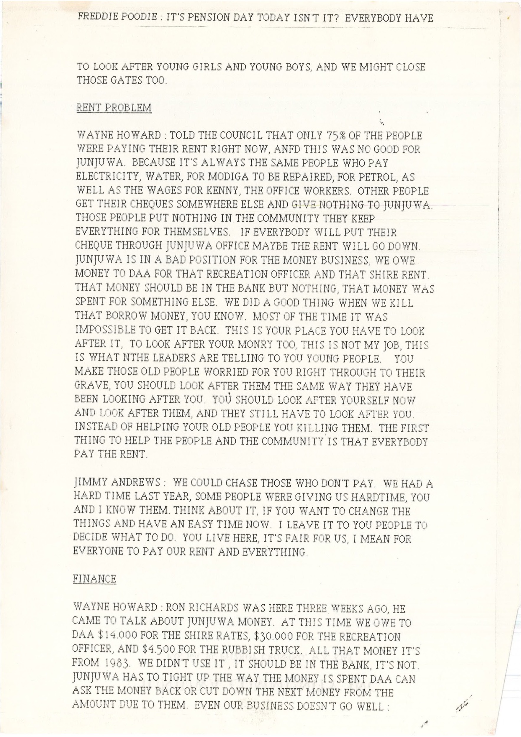 Minutes to Council Meeting held 07/01/86 - Junjuwa Council Annual Meeting [