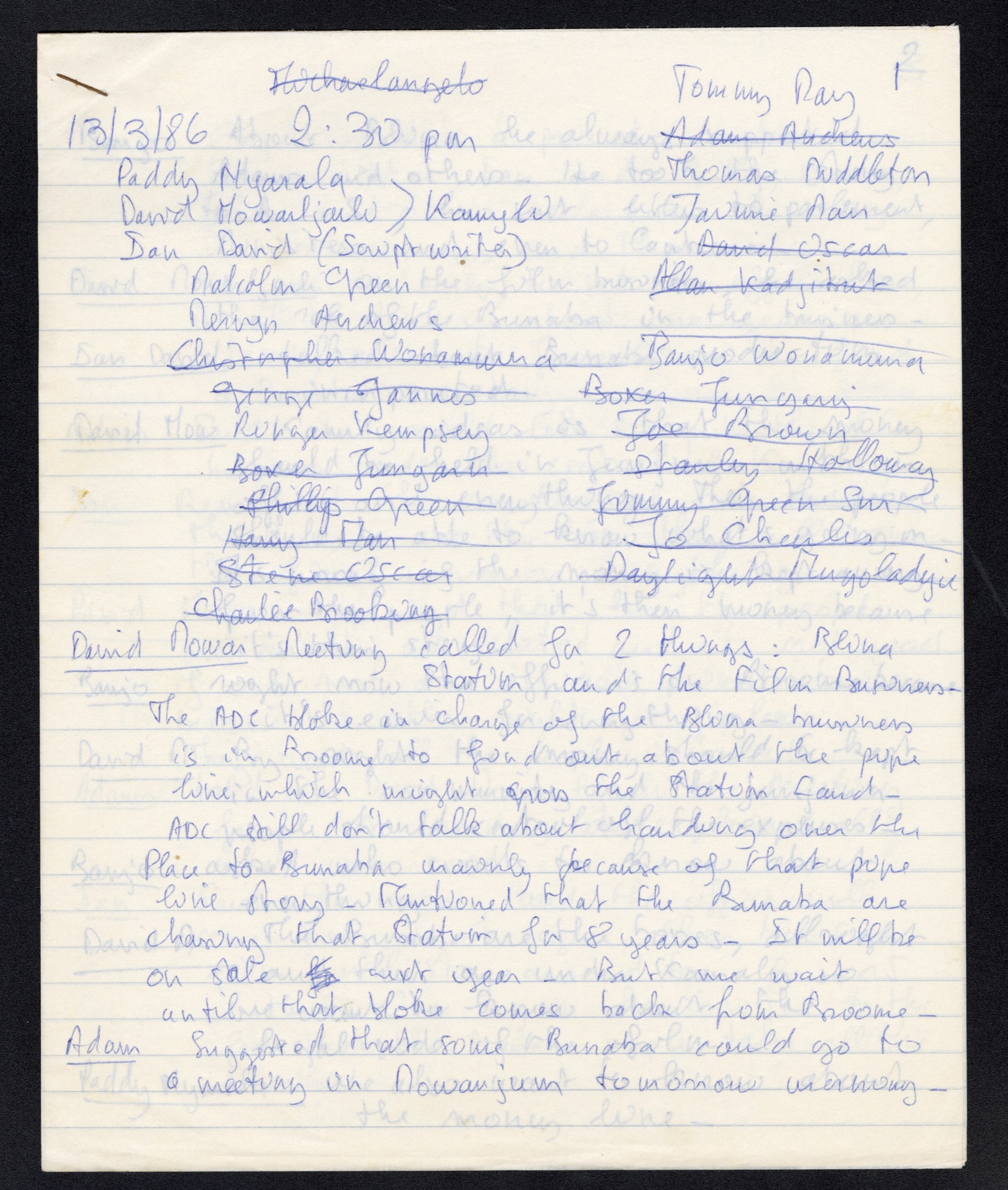 Junjuwa Community minutes councils from 13/03/1986 to 18/09/1986