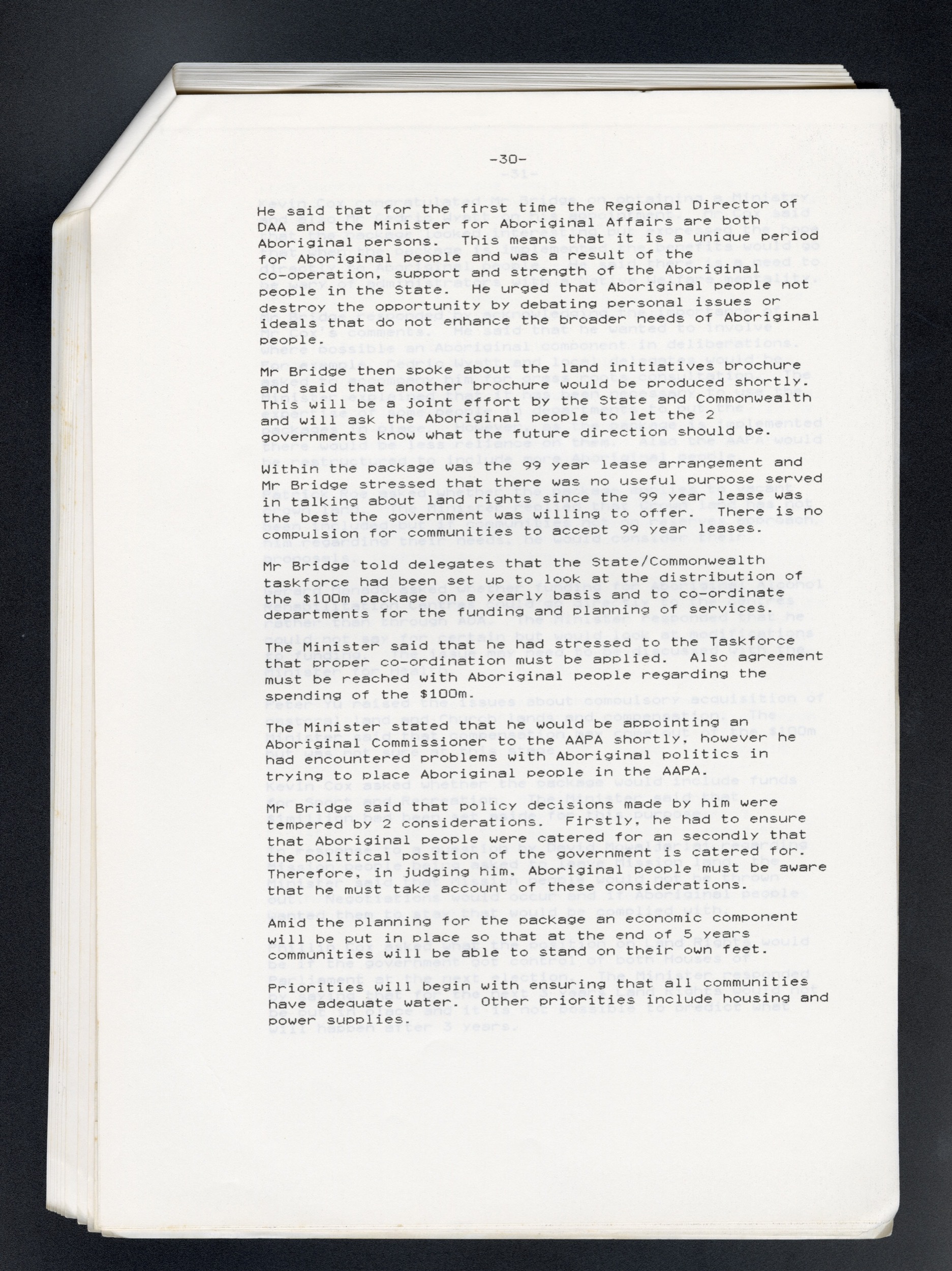 Quote this document 1986-08 [accessed: 2026/2/5]. "Aboriginal Affairs Consultative Commitee Meeting" (Object Id: 314763). In Aboriginal Affairs Consultative Commitee Meeting. ODSAS: https://www.odsas.net/object/314763.
