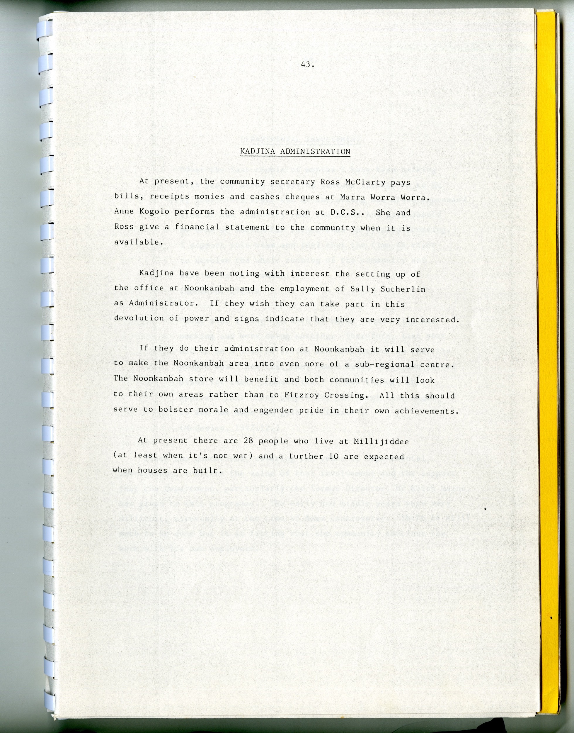Quote this document 1985-12 [accessed: 2026/2/5]. "Noonkanbah - Millijiddee Community Development Project" (Object Id: 315355). In Noonkanbah - Millijiddee Community Development Project. ODSAS: https://www.odsas.net/object/315355.