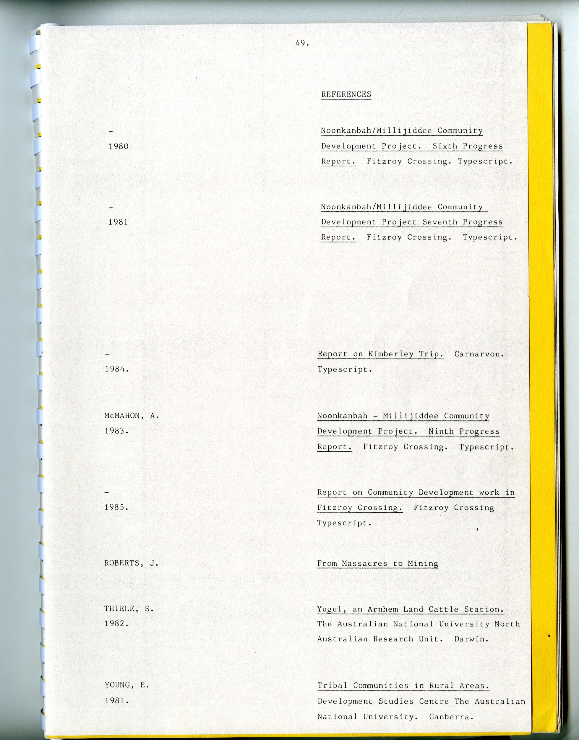 Quote this document 1985-12 [accessed: 2026/2/5]. "Noonkanbah - Millijiddee Community Development Project" (Object Id: 315361). In Noonkanbah - Millijiddee Community Development Project. ODSAS: https://www.odsas.net/object/315361.