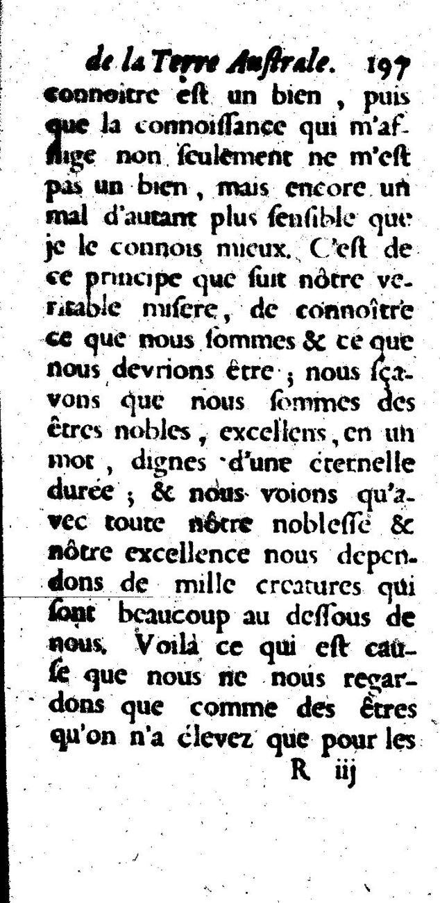 Quote this document De Foigny, Gabriel 1692 [accessed: 2026/1/22]. "Les avantures de Jacques Sadeur dans la découverte et le voiage de la terre australe" (Object Id: 4055). In Les avantures de Jacques Sadeur dans la découverte et le voiage de la terre australe. ODSAS: https://www.odsas.net/object/4055.