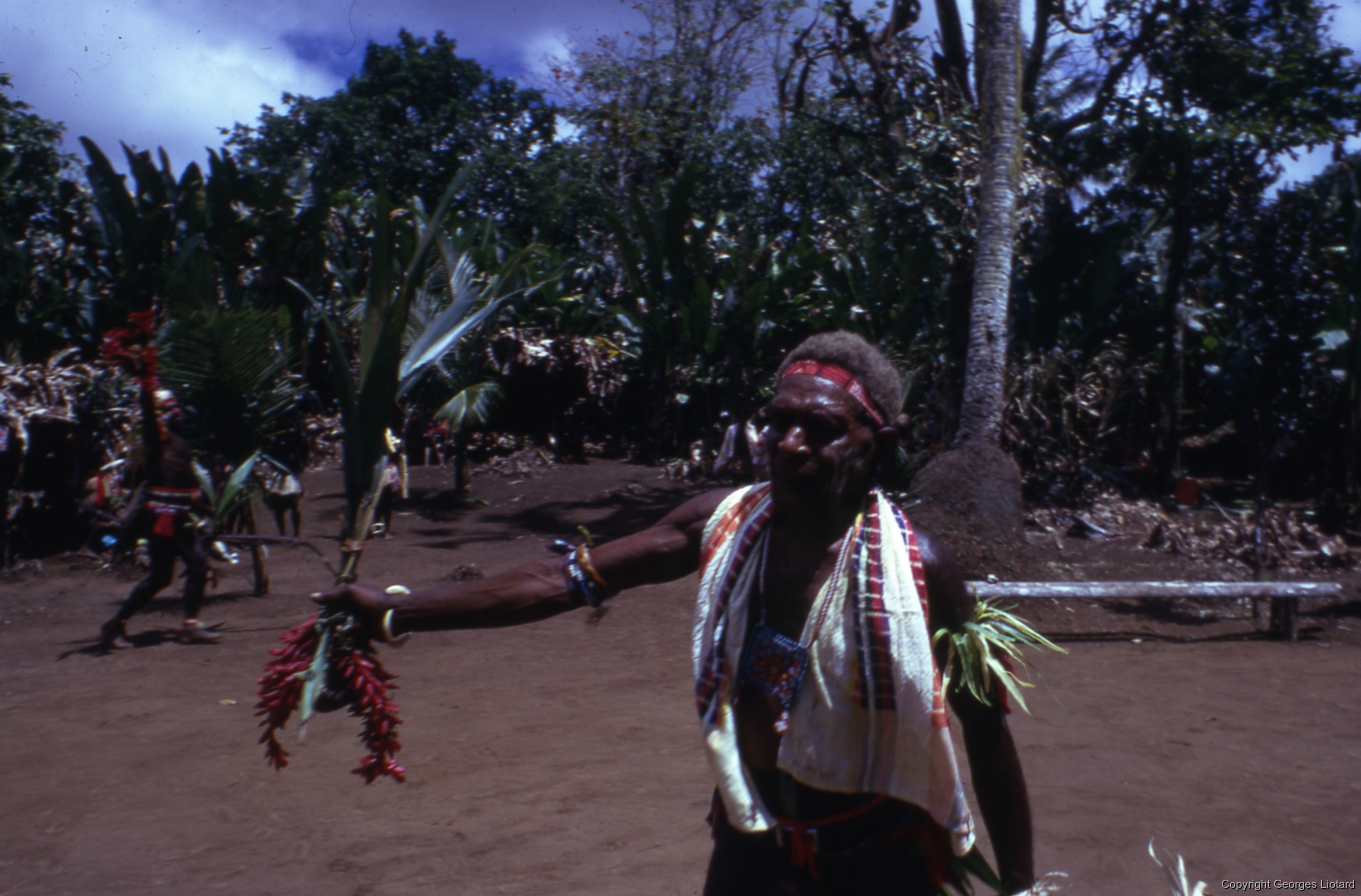 Quote this document Liotard, Georges 1974 [accessed: 2026/3/5]. "Chef Mweleun: Le chef Mweleun portant un rameau de fleurs rouges." (Object Id: 46631). In Funérailles à  Malakula (Malekula, Mallicolo) Vanuatu. ODSAS: https://www.odsas.net/object/46631.