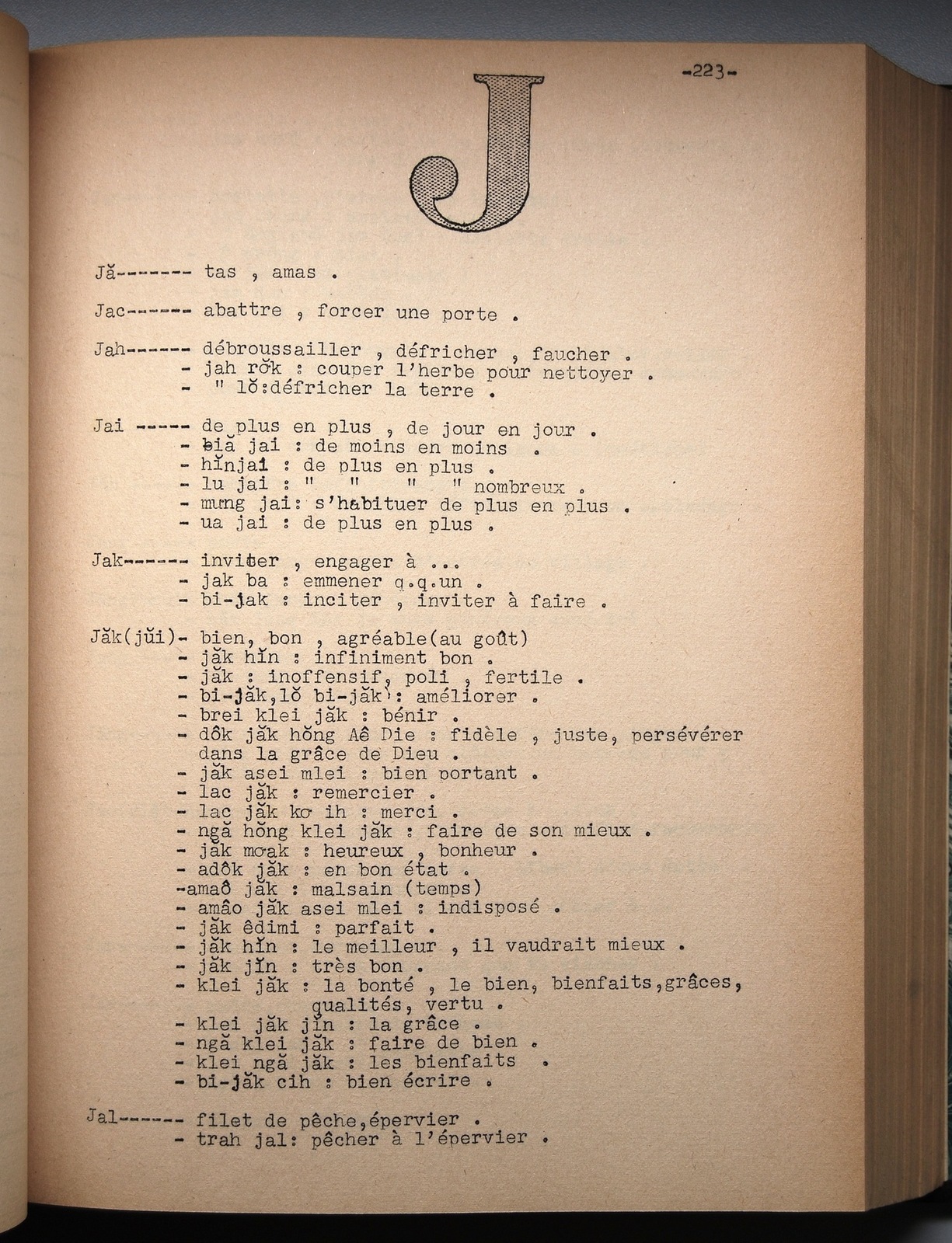 Quote this document Davias-Baudrit M.E.P, Jean-René 1965 [accessed: 2026/2/5]. "lettre J" (Object Id: 6617). In Dictionnaire rhadé-français par Davias-Baudrit. ODSAS: https://www.odsas.net/object/6617.