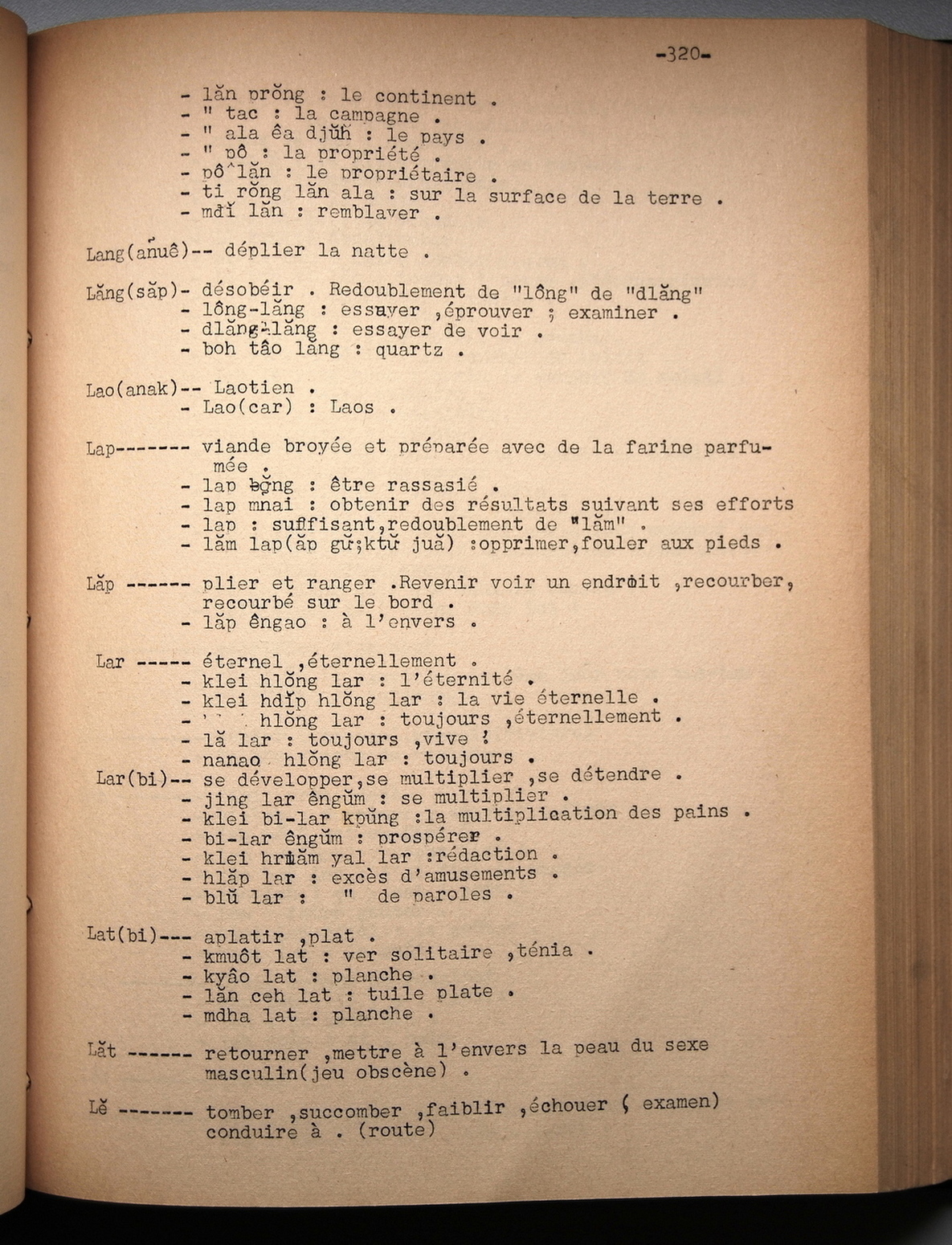 Dictionnaire rhadé-français par Davias-Baudrit / lettre L: lettre LE / Davias-Baudrit M.E.P, Jean-René /  Viet Nam/ Viet Nam