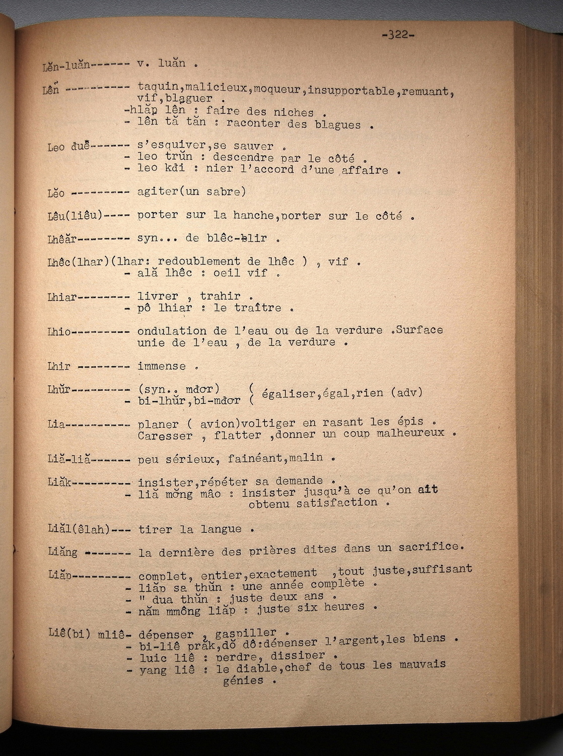 Dictionnaire rhadé-français par Davias-Baudrit / lettre L: lettre LI / Davias-Baudrit M.E.P, Jean-René /  Viet Nam/ Viet Nam