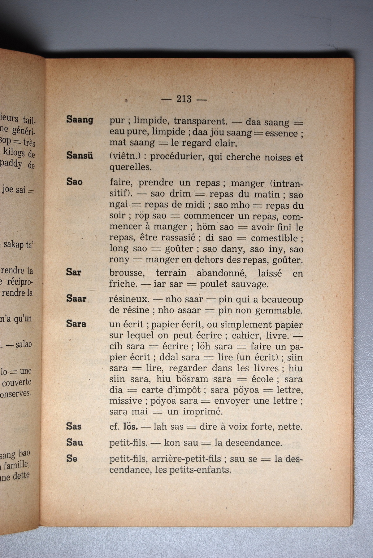 Dictionnaire Srê (Köho) - Français, Jacques Dournes / lettre S: lettre SE / Dournes, Jacques /  Viet Nam/ Viet Nam