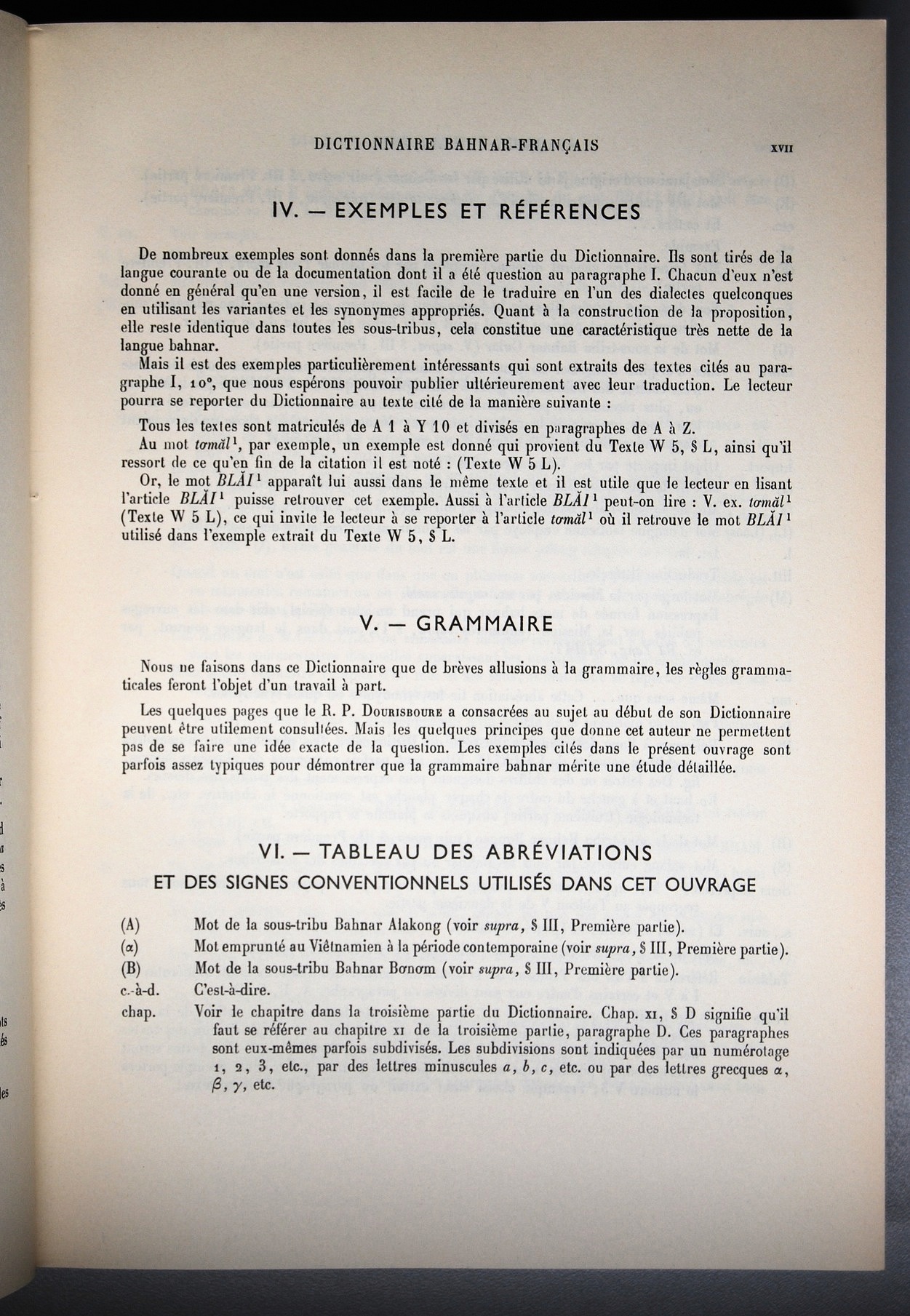 Dictionnaire Bahnar-Français, Guilleminet (tome 1, A-K) / sous partie avant propos : tableau des abréviations / Guilleminet, Paul /  Viet Nam/ Viet Nam