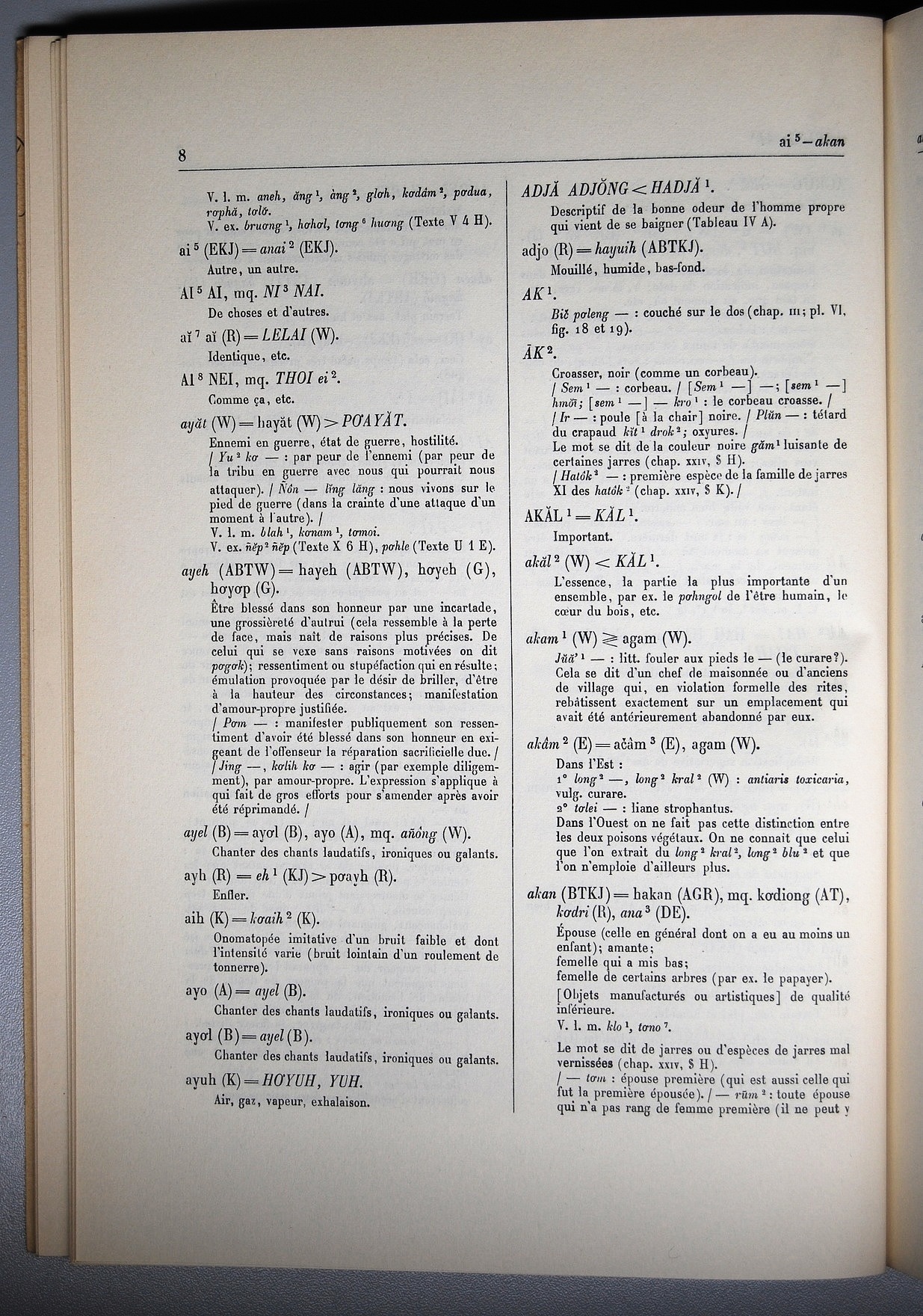 Dictionnaire Bahnar-Français, Guilleminet (tome 1, A-K) / sous partie lettre A: lettre AK / Guilleminet, Paul /  Viet Nam/ Viet Nam