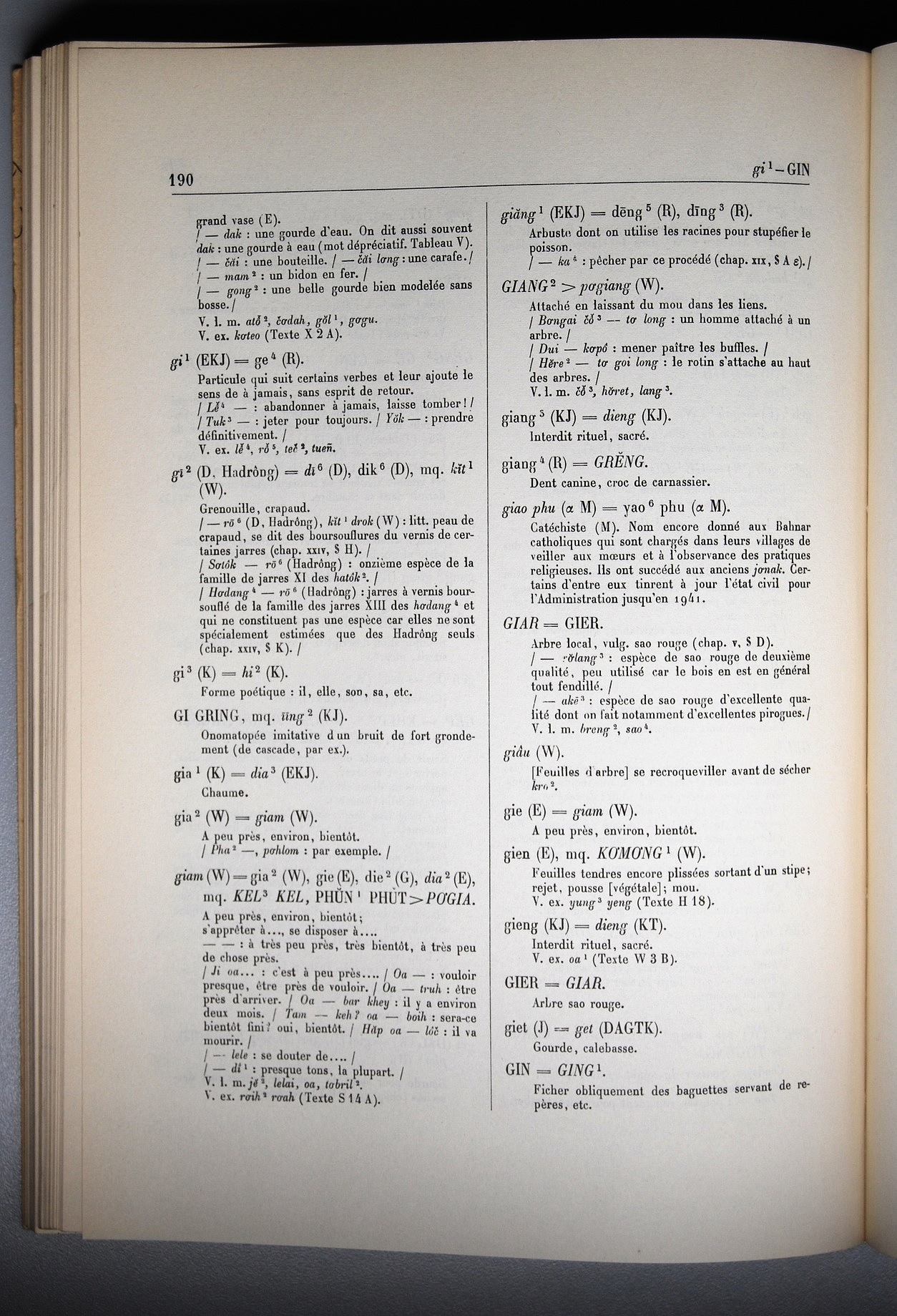 Dictionnaire Bahnar-Français, Guilleminet (tome 1, A-K) / sous partie lettre G: lettre Gi / Guilleminet, Paul /  Viet Nam/ Viet Nam