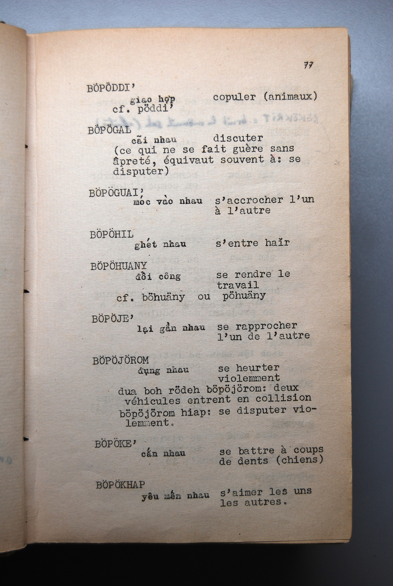Ebauche de Dictionnaire de la Langue Jörai, Jacques Dournes [Set(s) 22]