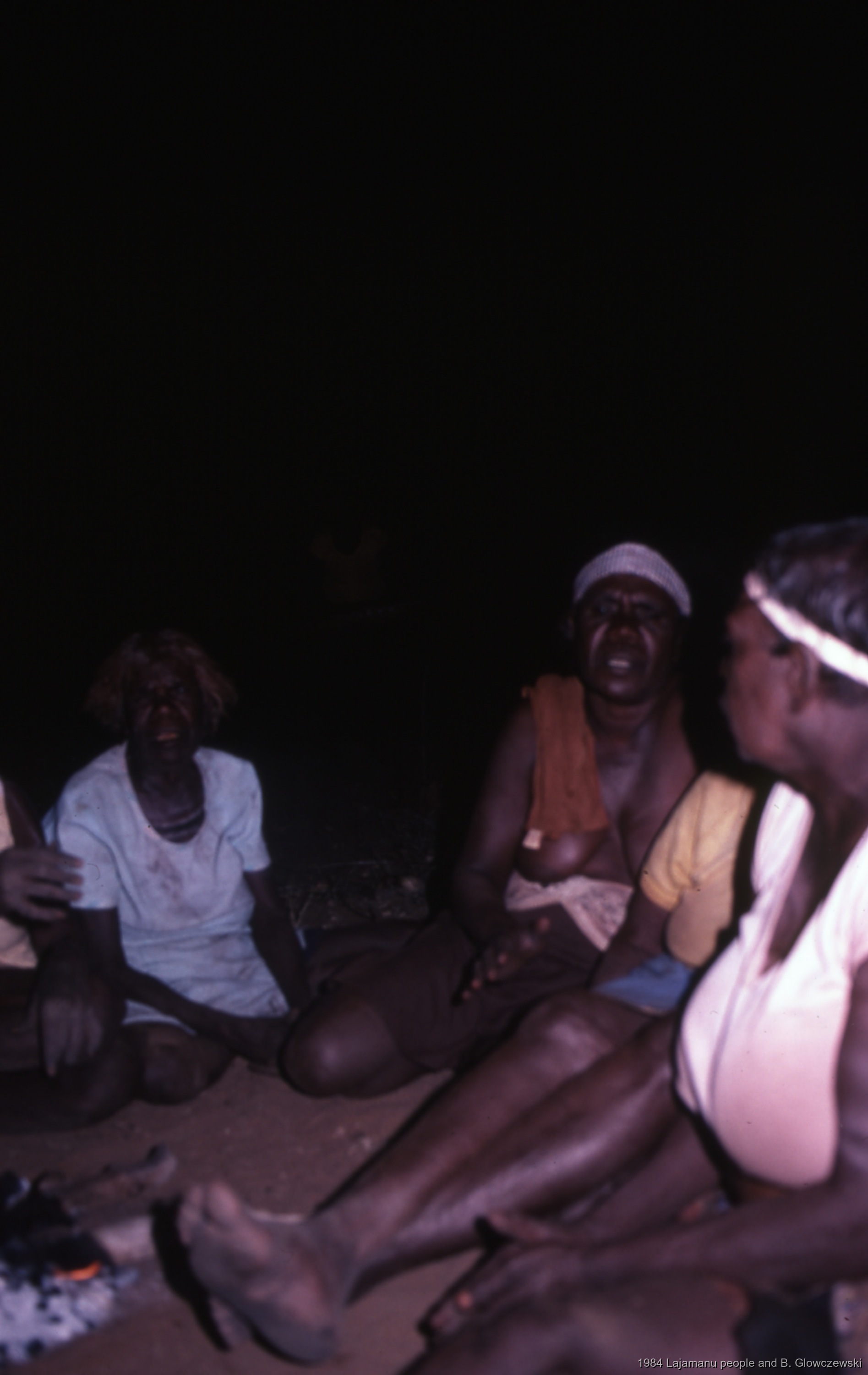 Glowczewski, Barbara 1984/04/11 [accessed: 2026/1/30]. "Night singing; Pampiryia, Maisy and Melody; Making a video to protect Yarturluyarturlu" (Object Id: 83894). In