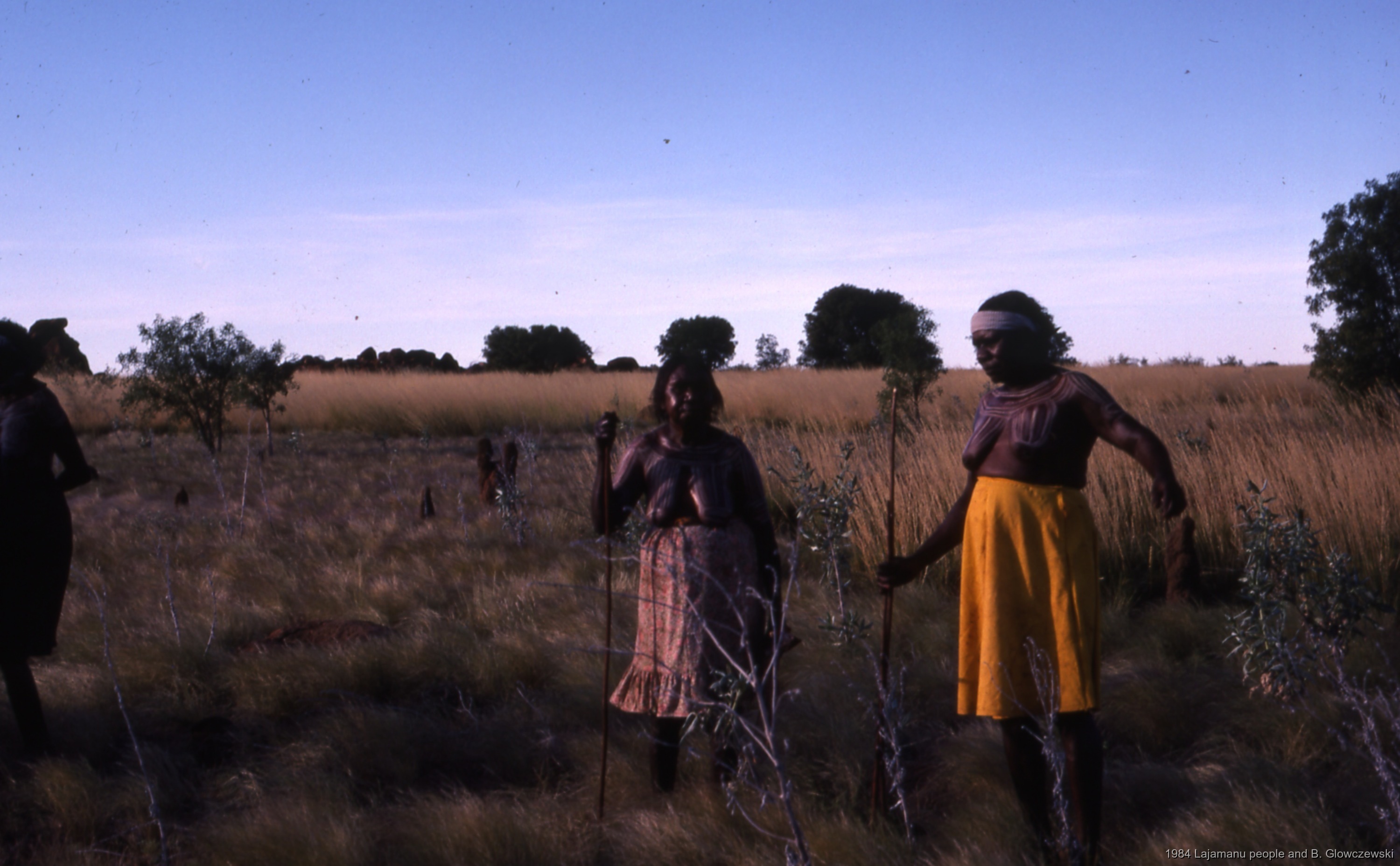 Glowczewski, Barbara 1984/04/12 [accessed: 2026/1/30]. "Betty and Pampiryia carrying witi before film; Making a video to protect Yarturluyarturlu" (Object Id: 83904). In