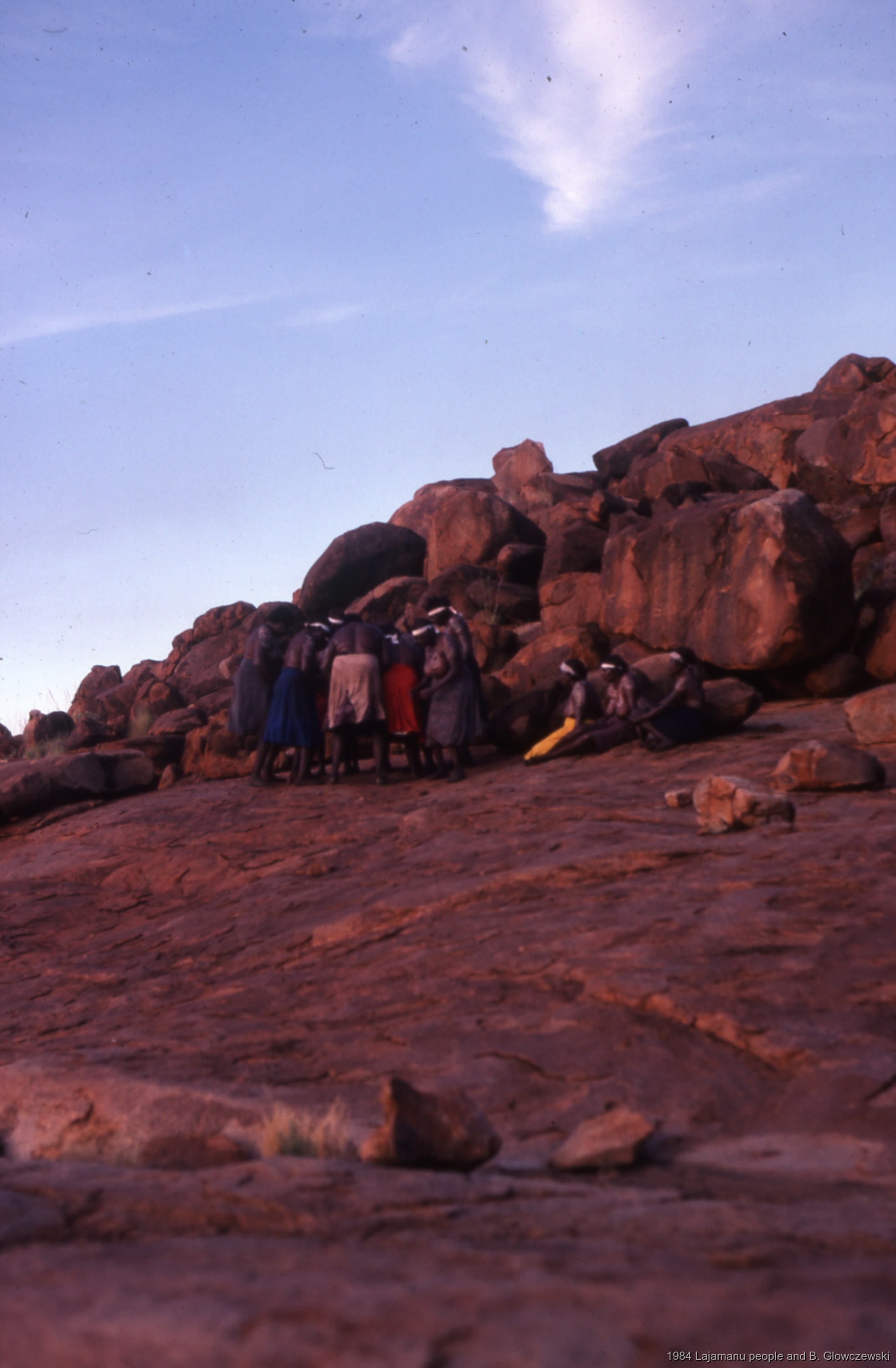 Quote this document Glowczewski, Barbara 1984/04/12 [accessed: 2026/1/30]. "Women dance at Jilimi (women's camp); Making a video to protect Yarturluyarturlu" (Object Id: 83919). In Granites 2. ODSAS: https://www.odsas.net/object/83919.