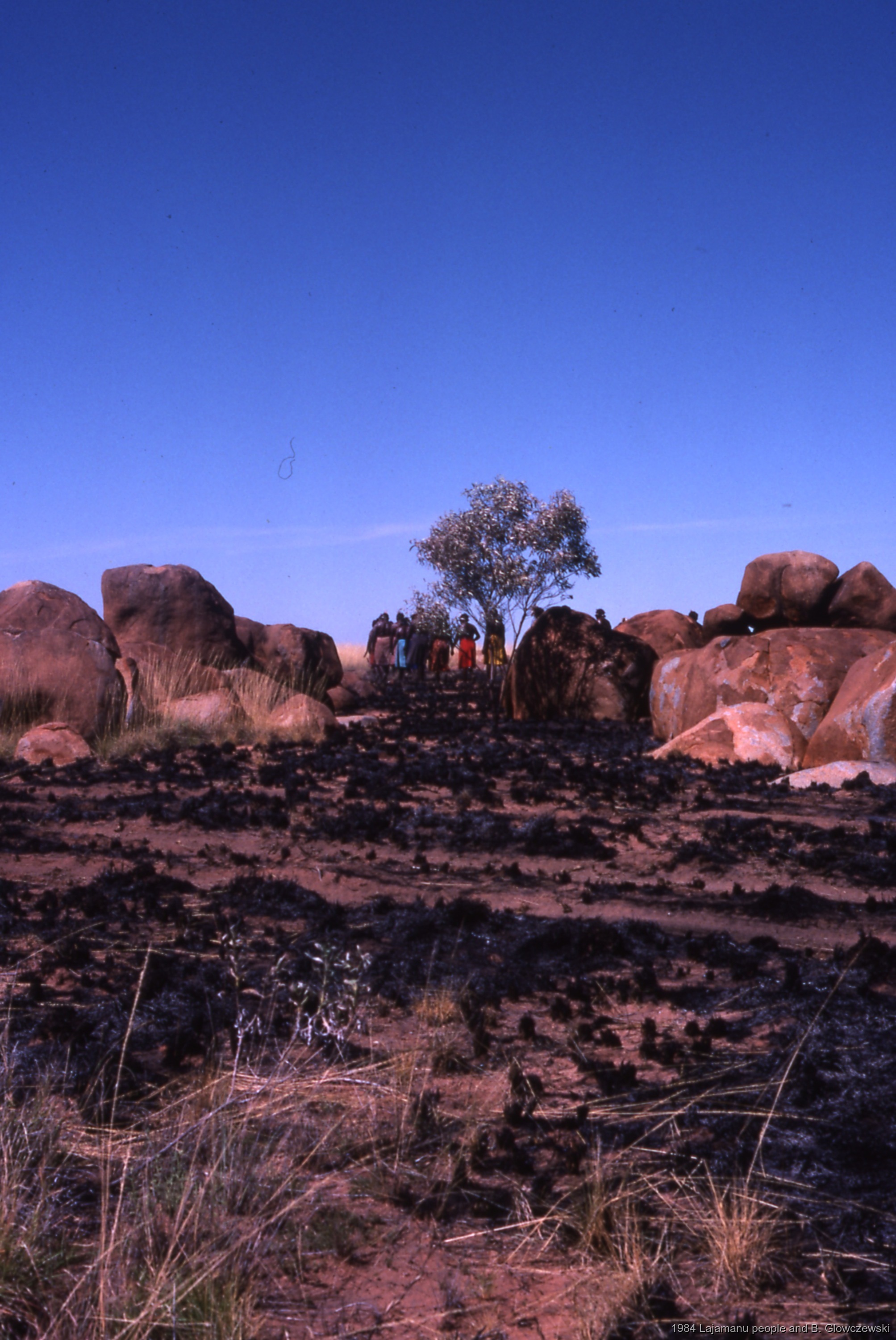 Glowczewski, Barbara 1984/04/13 [accessed: 2026/1/30]. "Walk from Mont soak; Making a video to protect Yarturluyarturlu" (Object Id: 83933). In