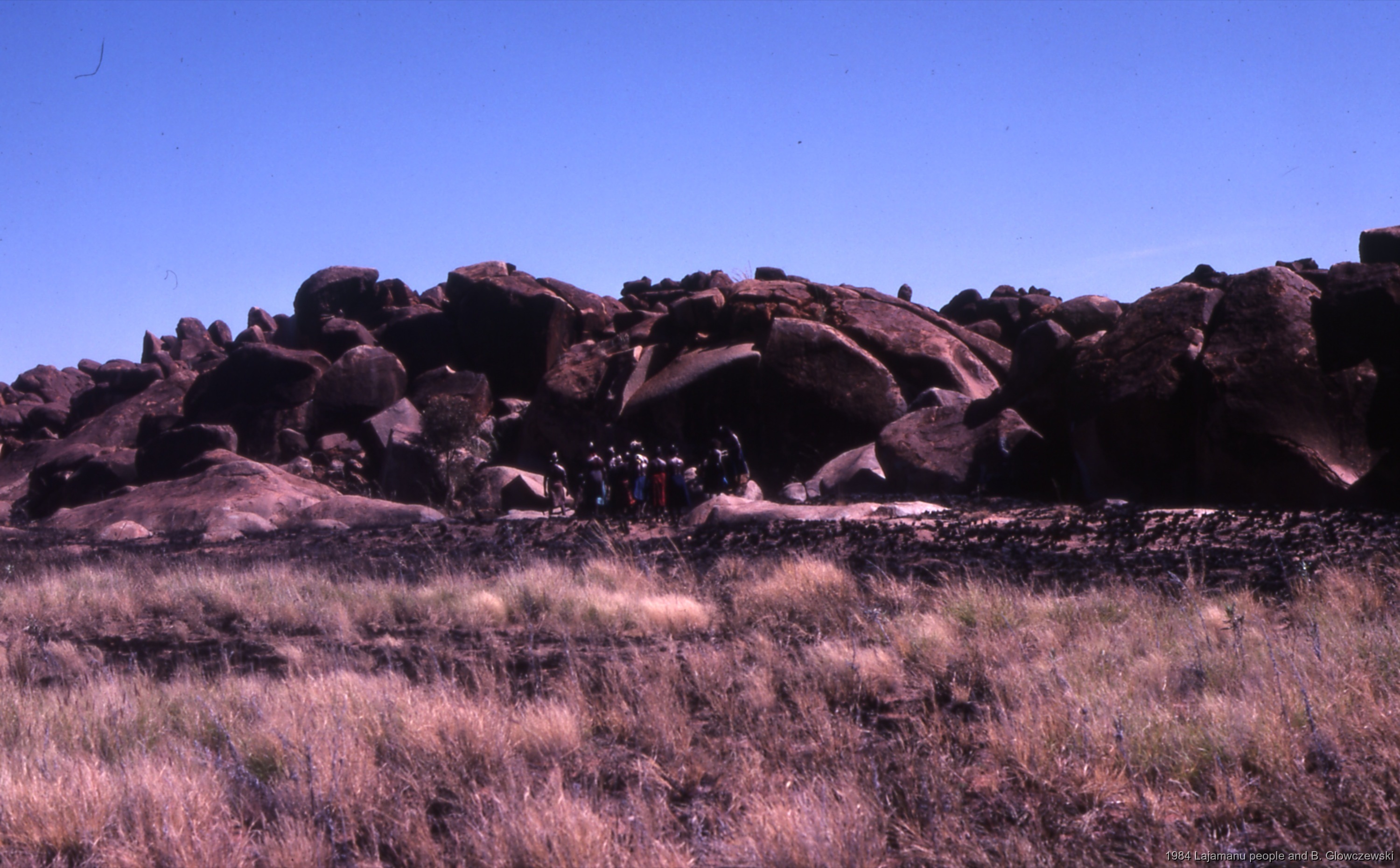 Quote this document Glowczewski, Barbara 1984/04/13 [accessed: 2026/1/30]. "Women walk and stop at soak on S. side; Making a video to protect Yarturluyarturlu" (Object Id: 83936). In Granites 2. ODSAS: https://www.odsas.net/object/83936.