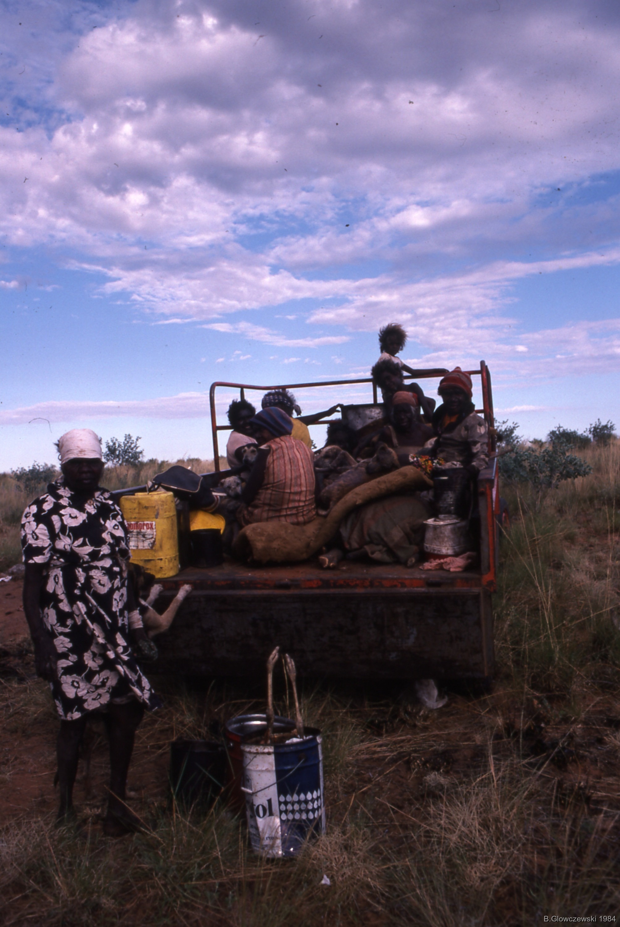 Glowczewski, Barbara 1984/04/24 [accessed: 2026/1/30]. "Winji tractor at Winnecke Creek; Camping with the Gibson family" (Object Id: 83984). In