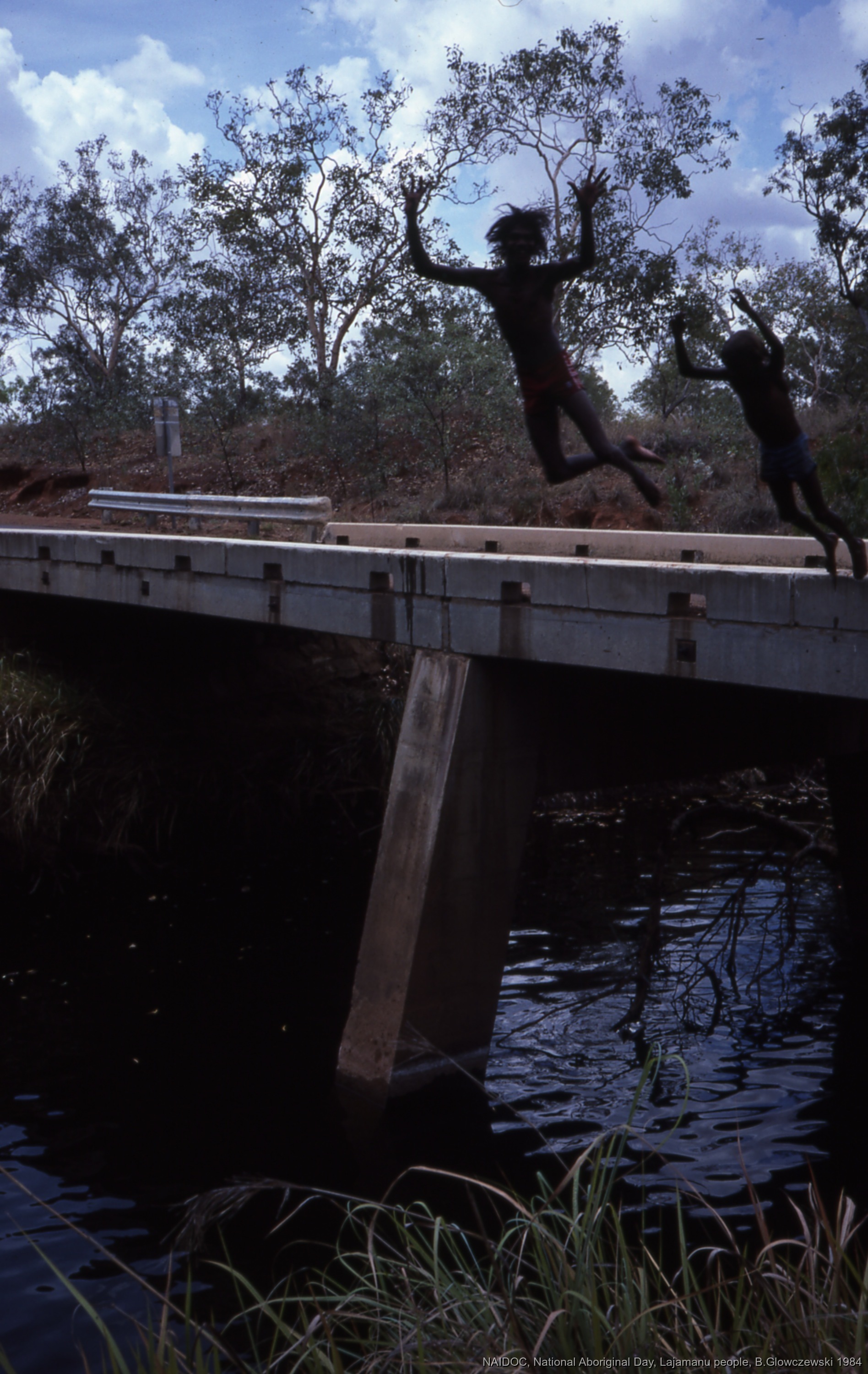 Glowczewski, Barbara 1984/09/14 [accessed: 2026/1/30]. "Boys jump in Katherine river" (Object Id: 84821). In