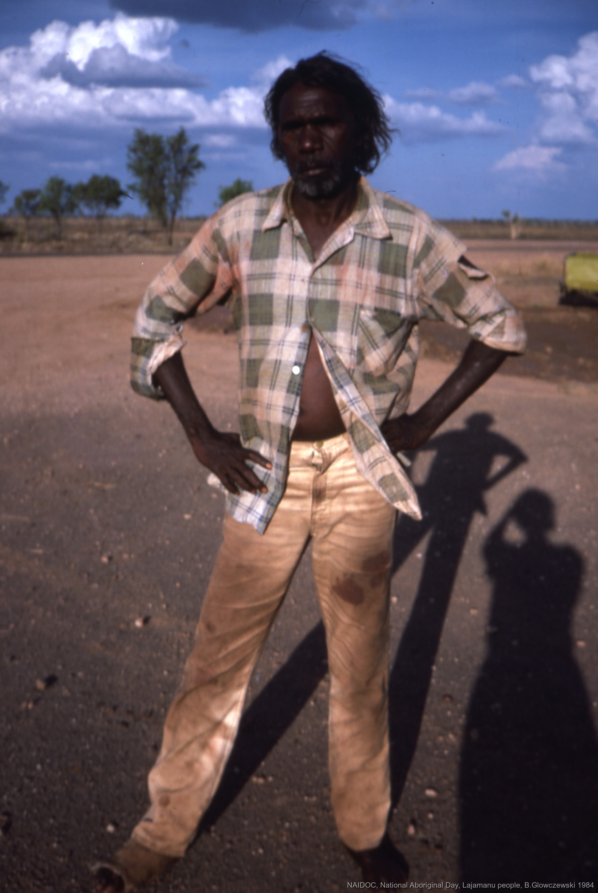 Quote this document Glowczewski, Barbara 1984/09/14 [accessed: 2026/1/30]. "Thomas Jangala" (Object Id: 84827). In NAIDOC: National Aboriginal Day, Lajamanu and Katherine, 1984 (photos). ODSAS: https://www.odsas.net/object/84827.