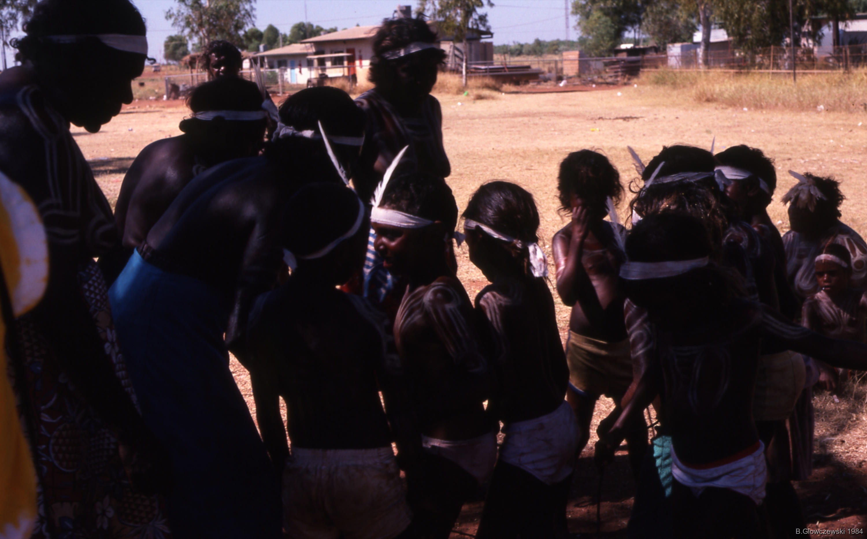 School 1 (1984) / Girls dance in the parc / Barbara Glowczewski / School, Lajamanu, Tanami Desert, Central Australia