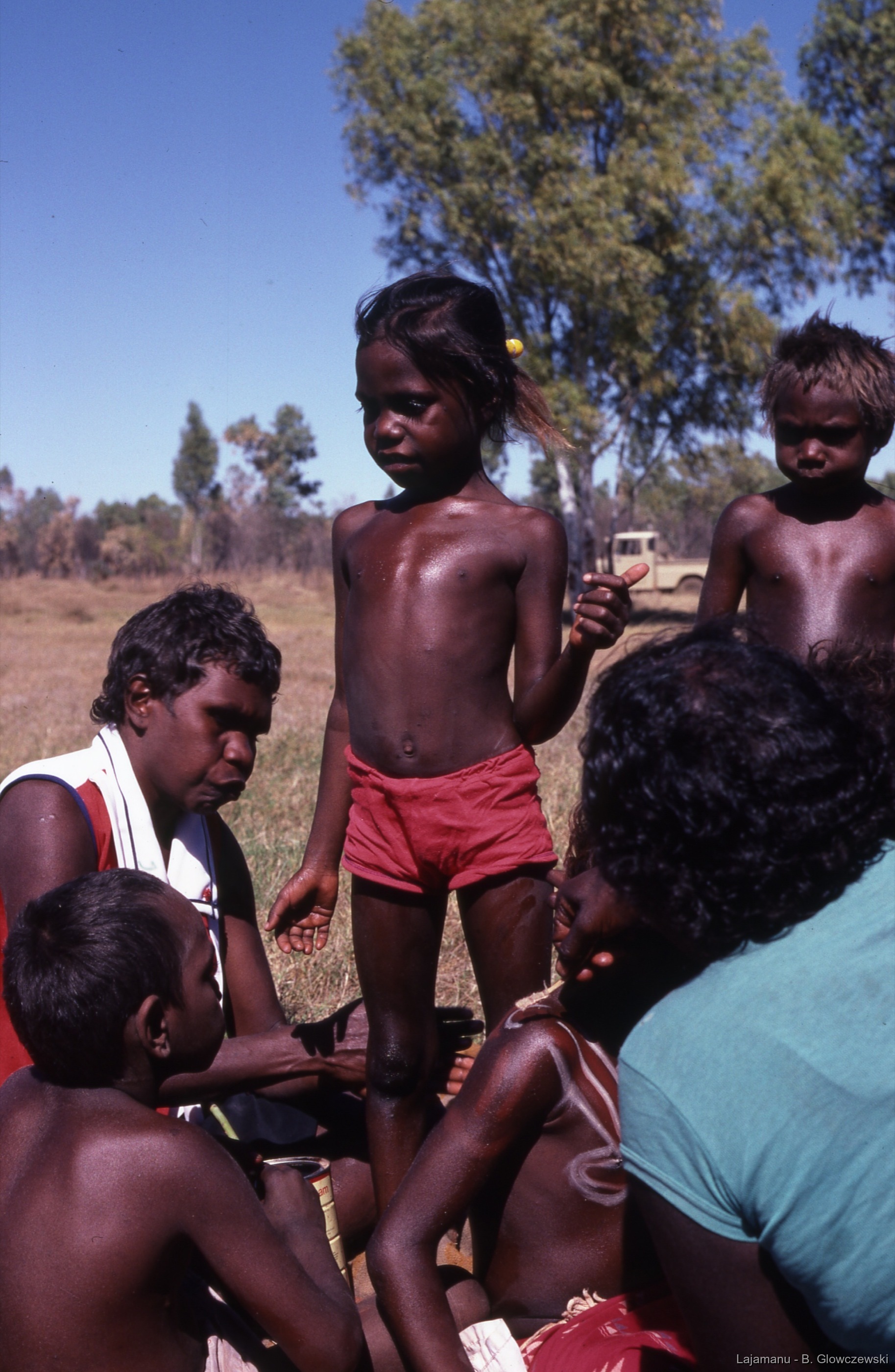 Quote this document Glowczewski, Barbara 1984/07/06 [accessed: 2026/1/30]. "Sally-Anne paints kids with a stick" (Object Id: 84883). In School 2. ODSAS: https://www.odsas.net/object/84883.