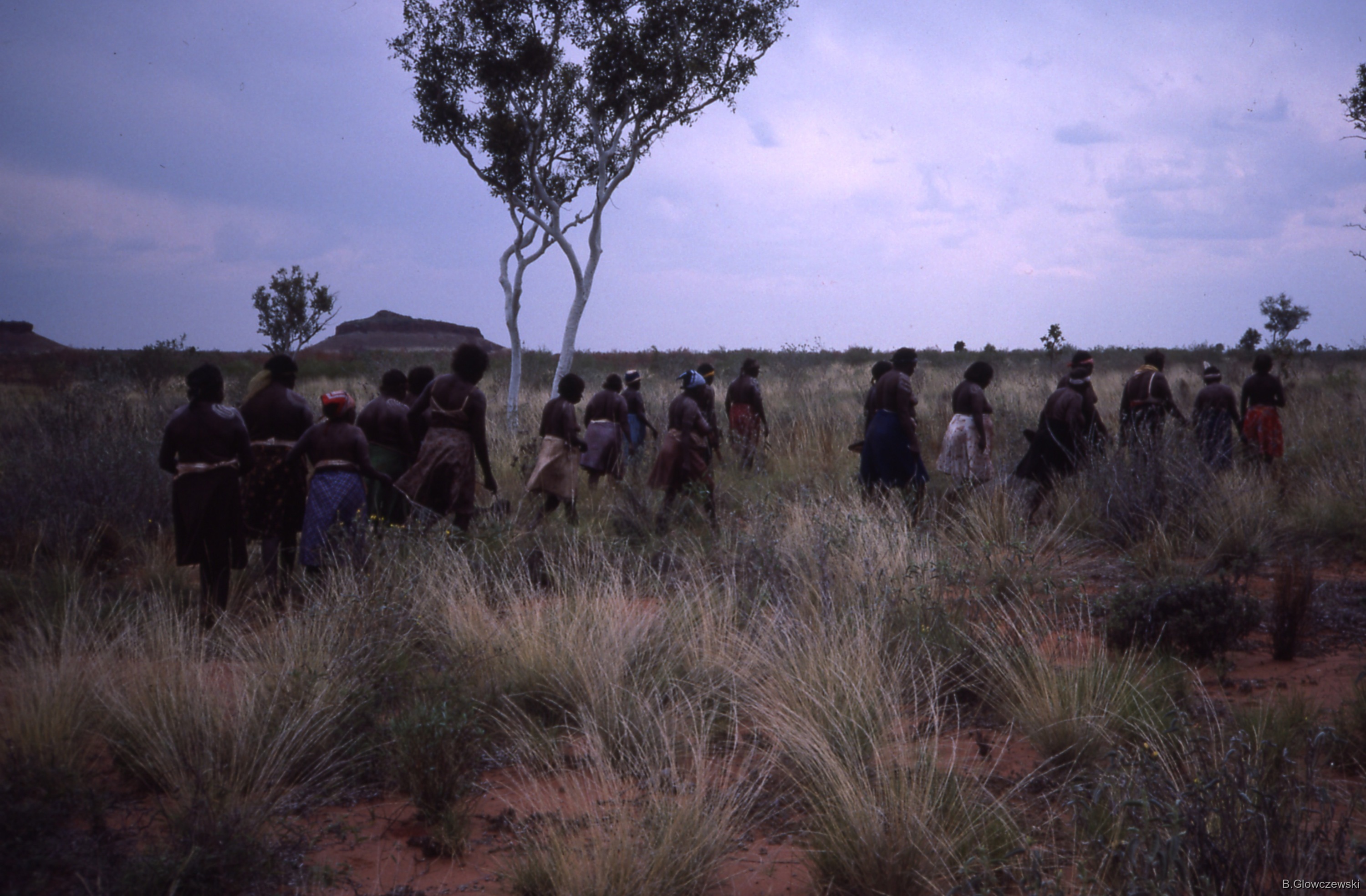 Quote this document Glowczewski, Barbara 1984/09/30 [accessed: 2026/2/5]. "women walking near sacred hill long hill (yunta = windbreak) of Kurlungalinpa, country for Nungarrayi and Napaljarri" (Object Id: 85247). In Yawulyu 2 - dancing in Kurlungalinpa and on the way back to Lajamanu. ODSAS: https://www.odsas.net/object/85247.