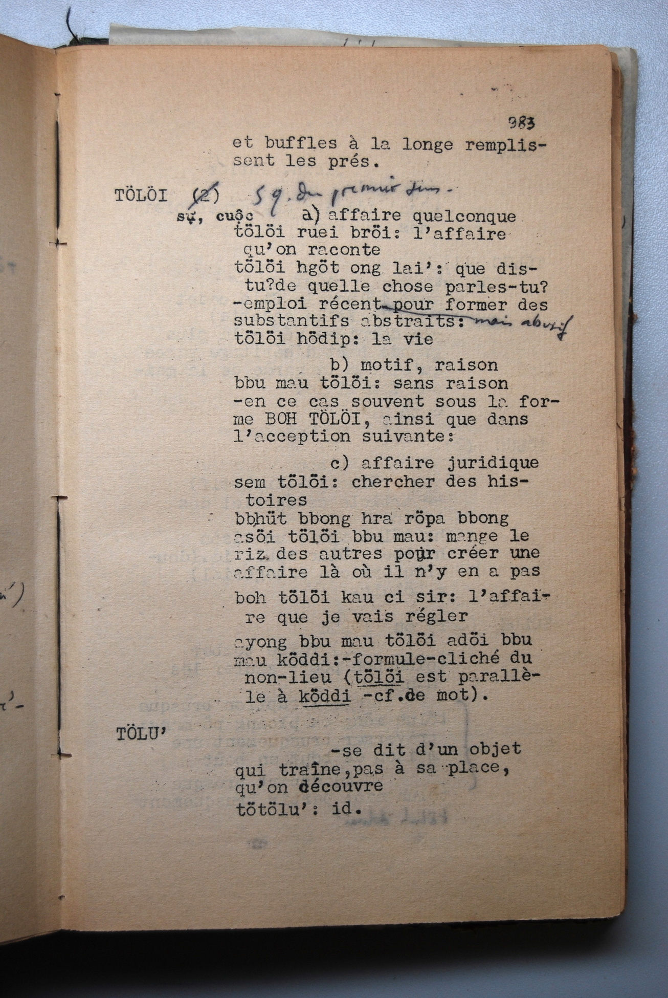 Quote this document Dournes, Jacques 1955-1964 [accessed: 2026/2/5]. "Ebauche de Dictionnaire de la Langue Jörai, Jacques Dournes" (Object Id: 8723). In Ebauche de Dictionnaire de la Langue Jörai, Jacques Dournes. ODSAS: https://www.odsas.net/object/8723.