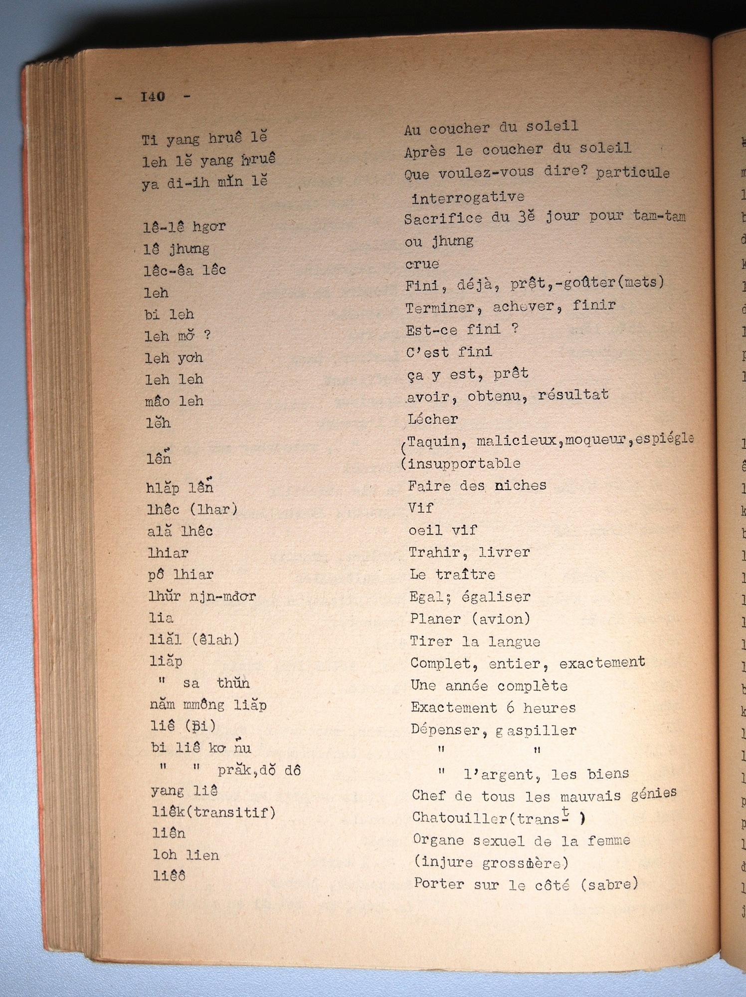 Dictionnaire Rhadé-Français par Benjamin Louison / lettre L: lettre LI / Louison, Benjamin /  Viet Nam/ Viet Nam