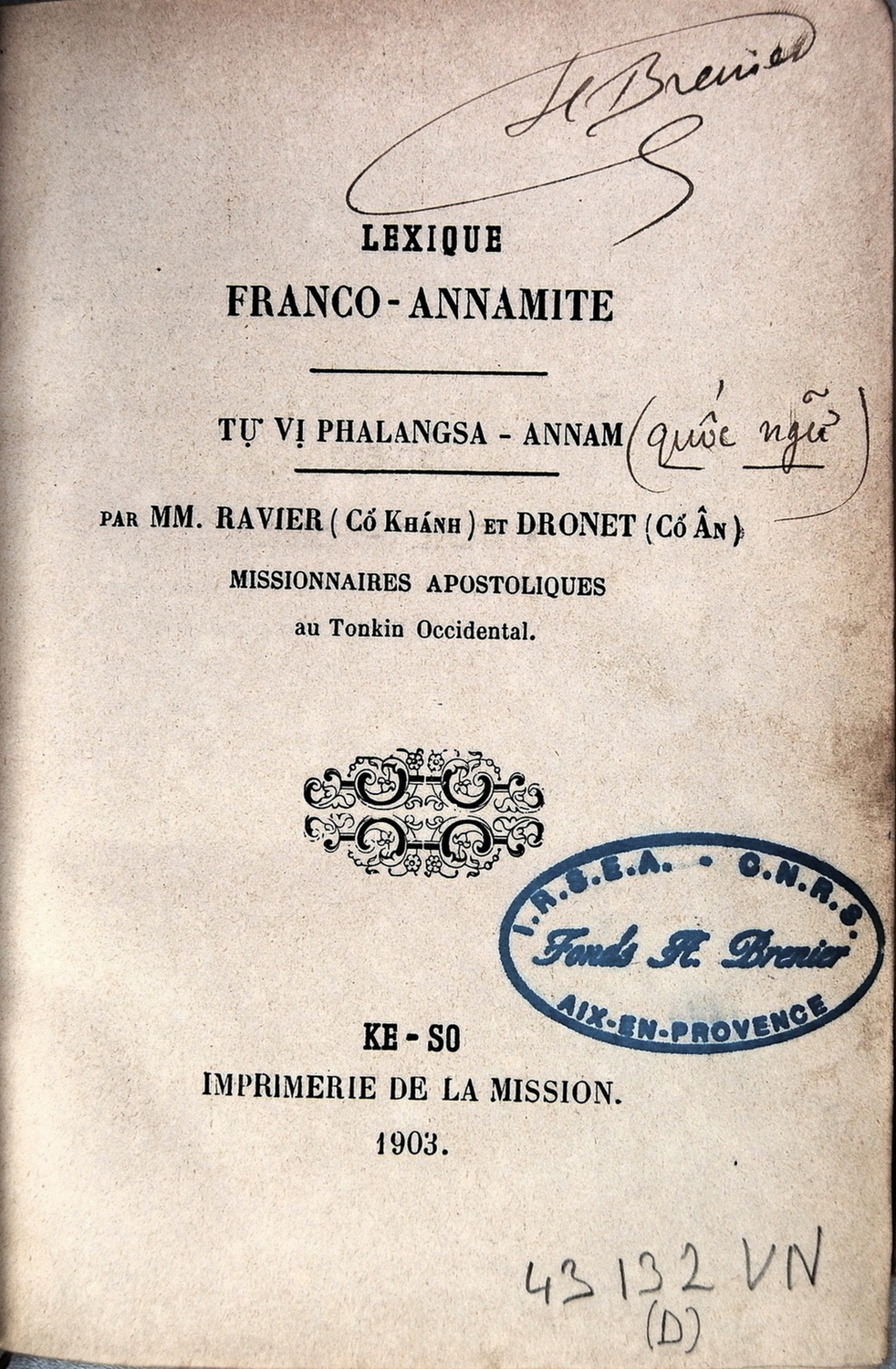 Title/DescriptionLexique Franco-Annamite, Ravier et Dronet