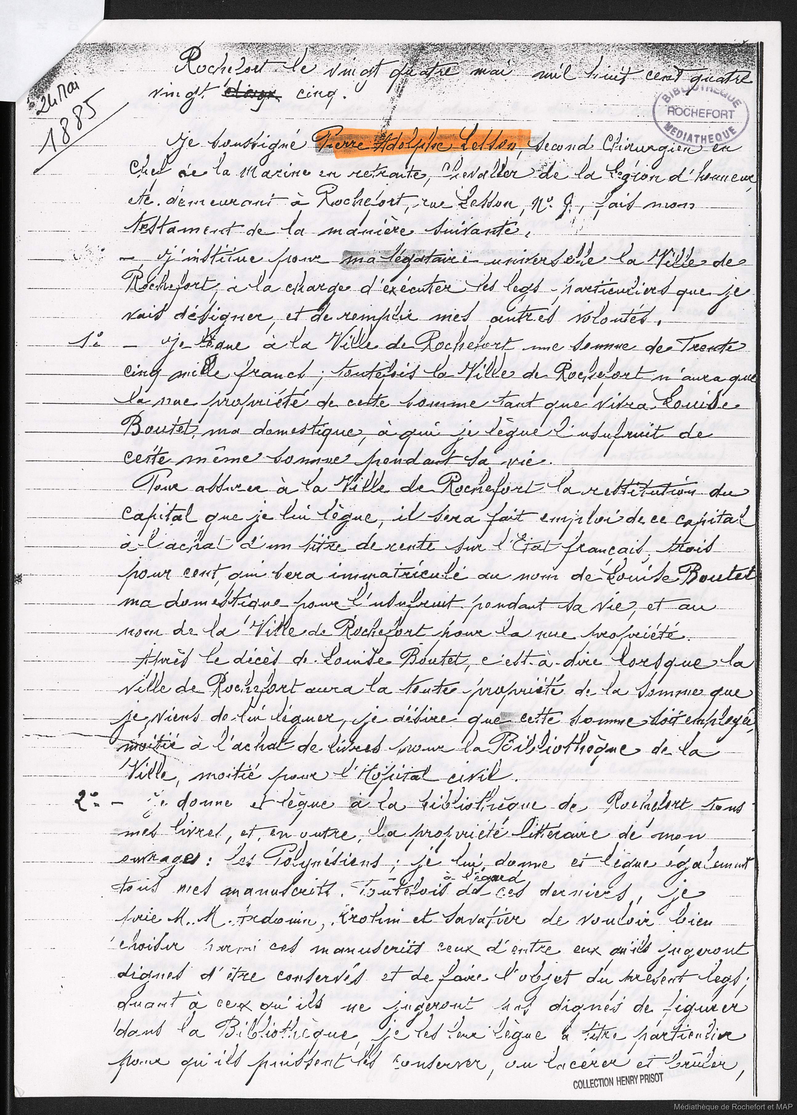 Lesson, Pierre-Adolphe 1885-05-24 [accessed: 2026/2/4]. "Testament de P.A Lesson (B172996201_HP01000)" (Object Id: 158267). In