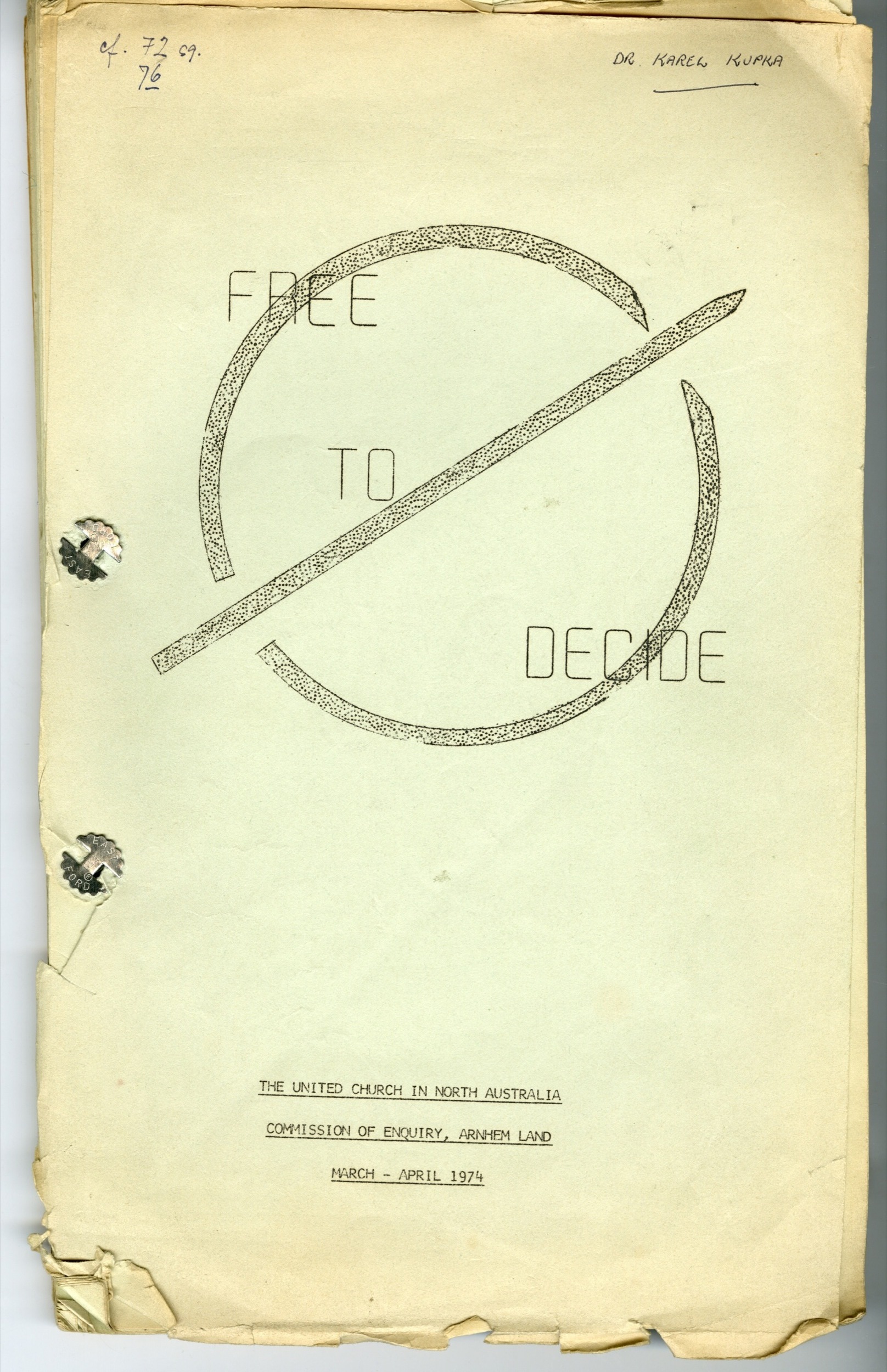 Kupka, Karel 1974 [accessed: 2026/1/16]. "Free to decide, The United Church in North Australia. Commission of Enquiry, Arnhem Land, March - April 1974" (Object Id: 33703). In
