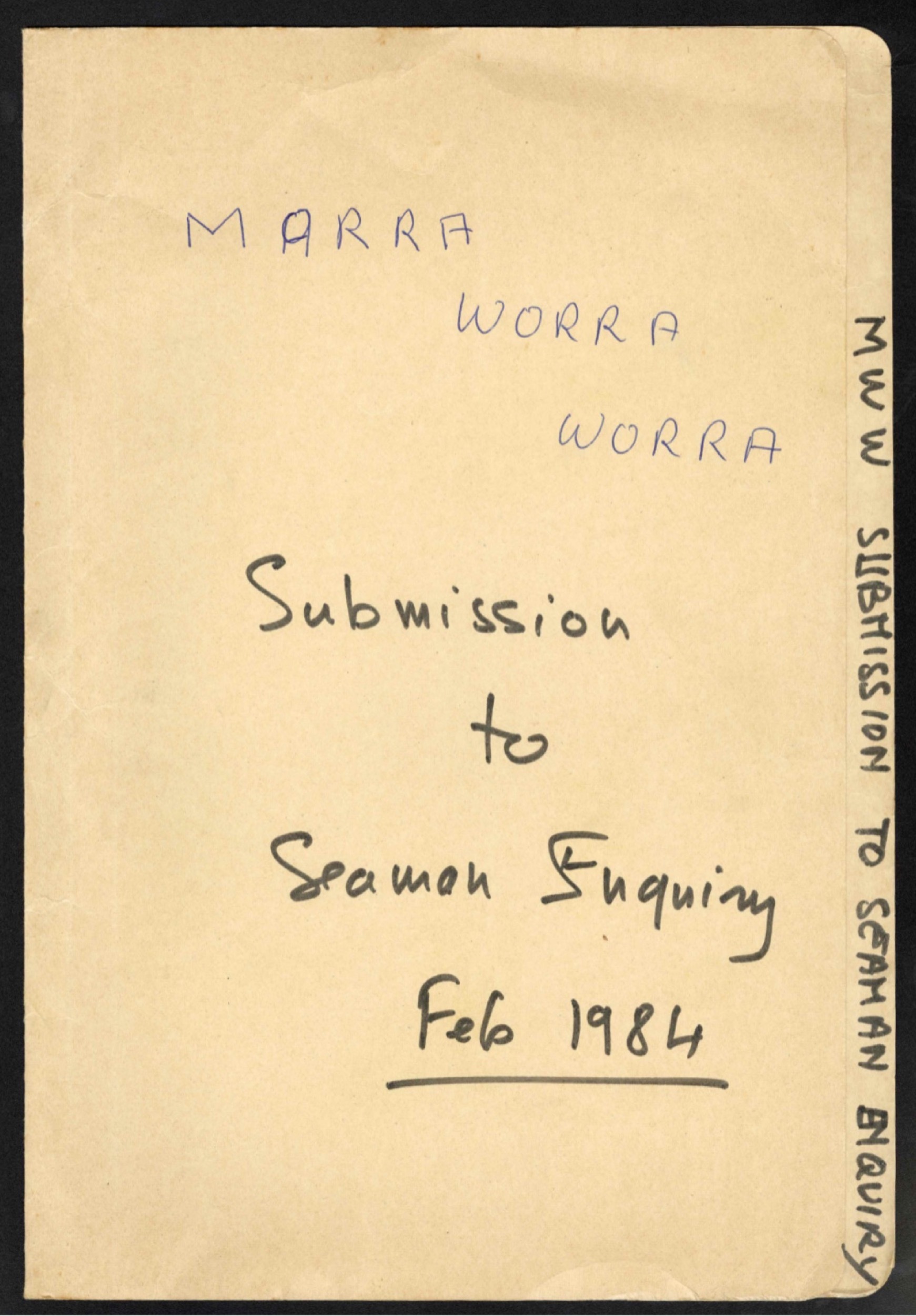 1984-02-06 [accessed: 2026/2/5]. "Marra Worra Worra Submission to Seaman Enquiry " (Object Id: 314196). In