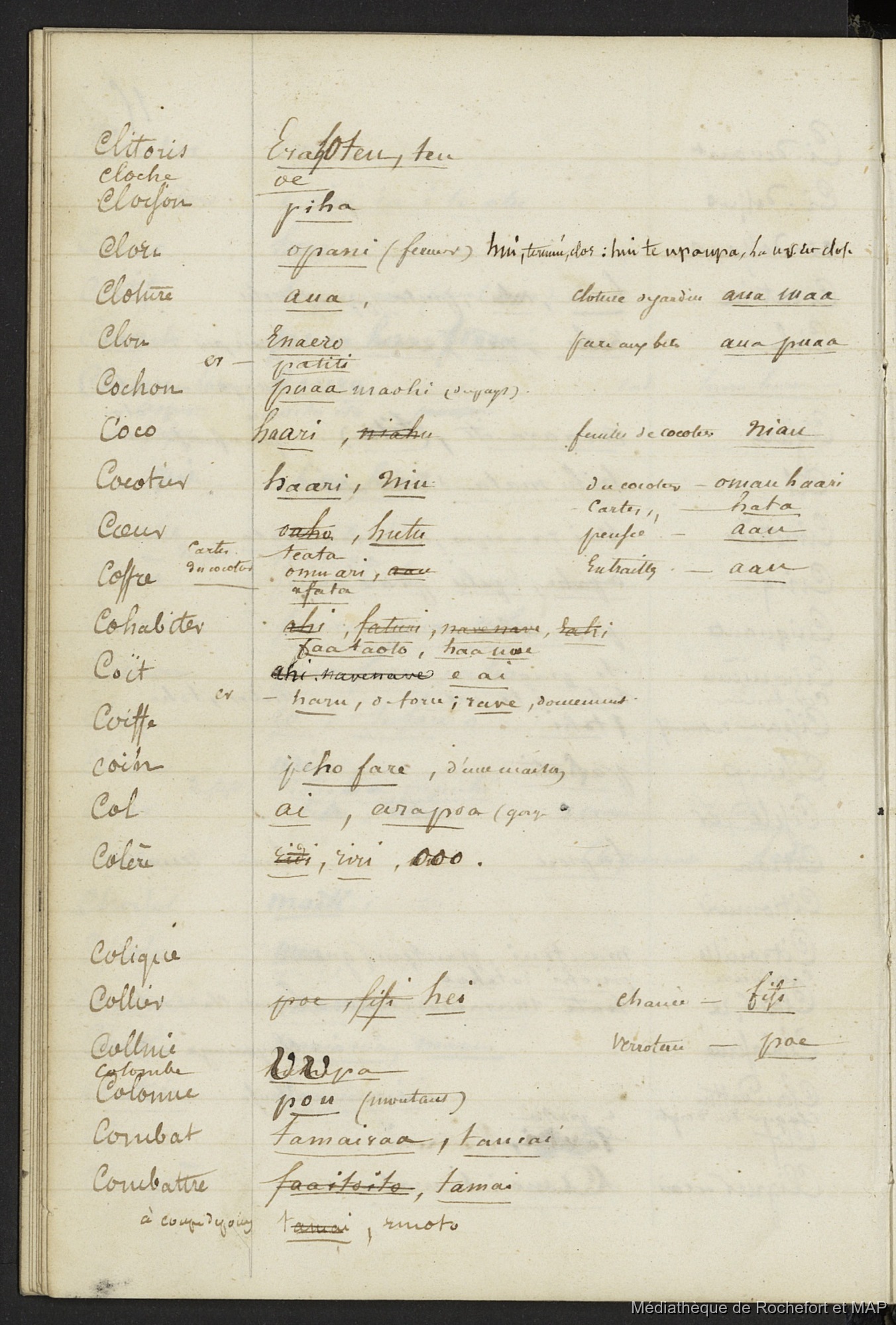 Lesson, Pierre-Adolphe 1844-1849 [accessed: 2026/2/5]. "Vocabulaire de l'Ile de Tahiti 1844 - 1849 (B172996201_Ms_00117)" (Object Id: 120286). In