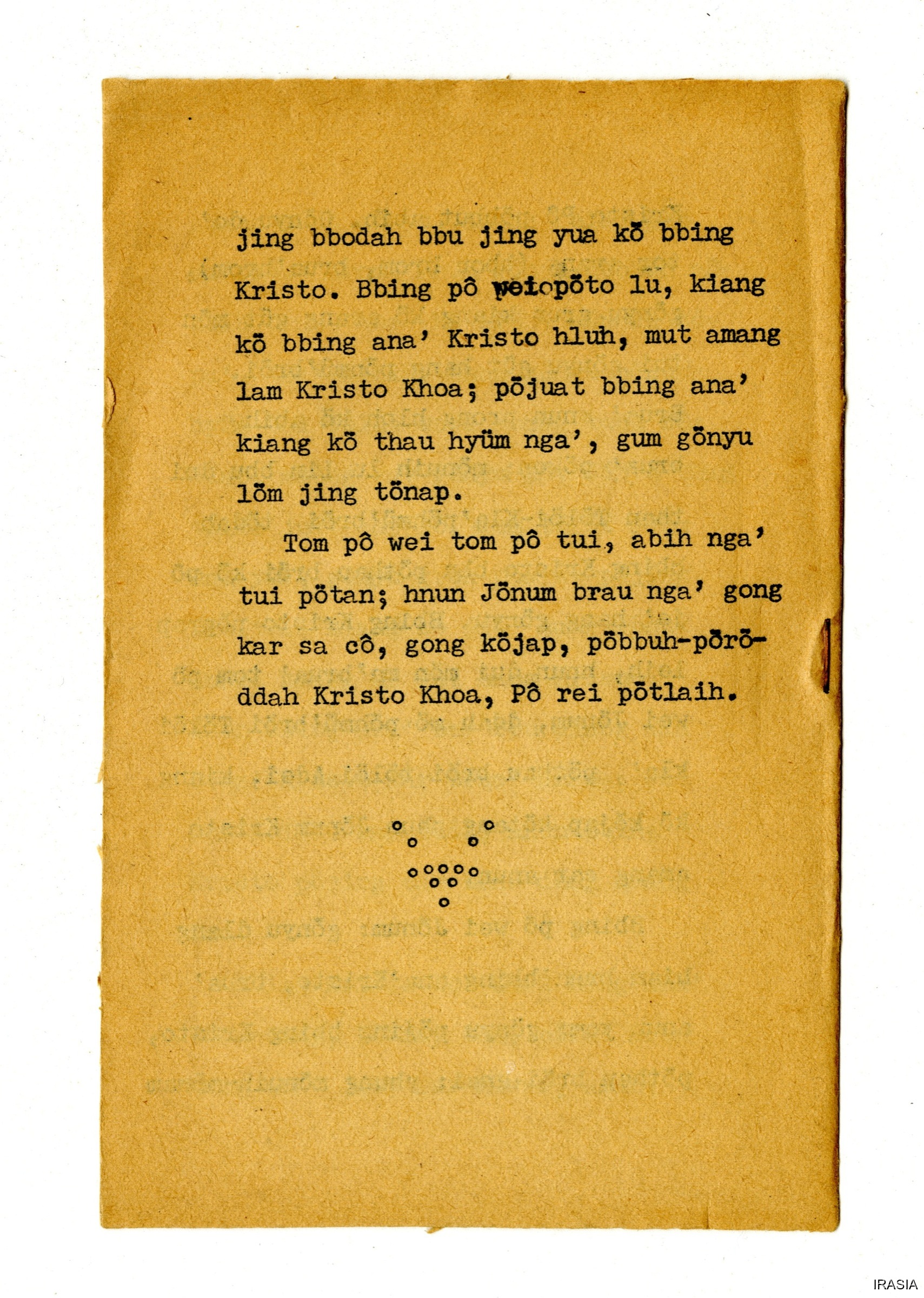 Quote this document Dournes, Jacques 1946-1955 [accessed: 2026/2/2]. "Catéchisme ; KHUL ANIA POBBUT ABIH 001" (Object Id: 126768). In Catéchisme ; KHUL ANIA POBBUT ABIH 001. ODSAS: https://www.odsas.net/object/126768.