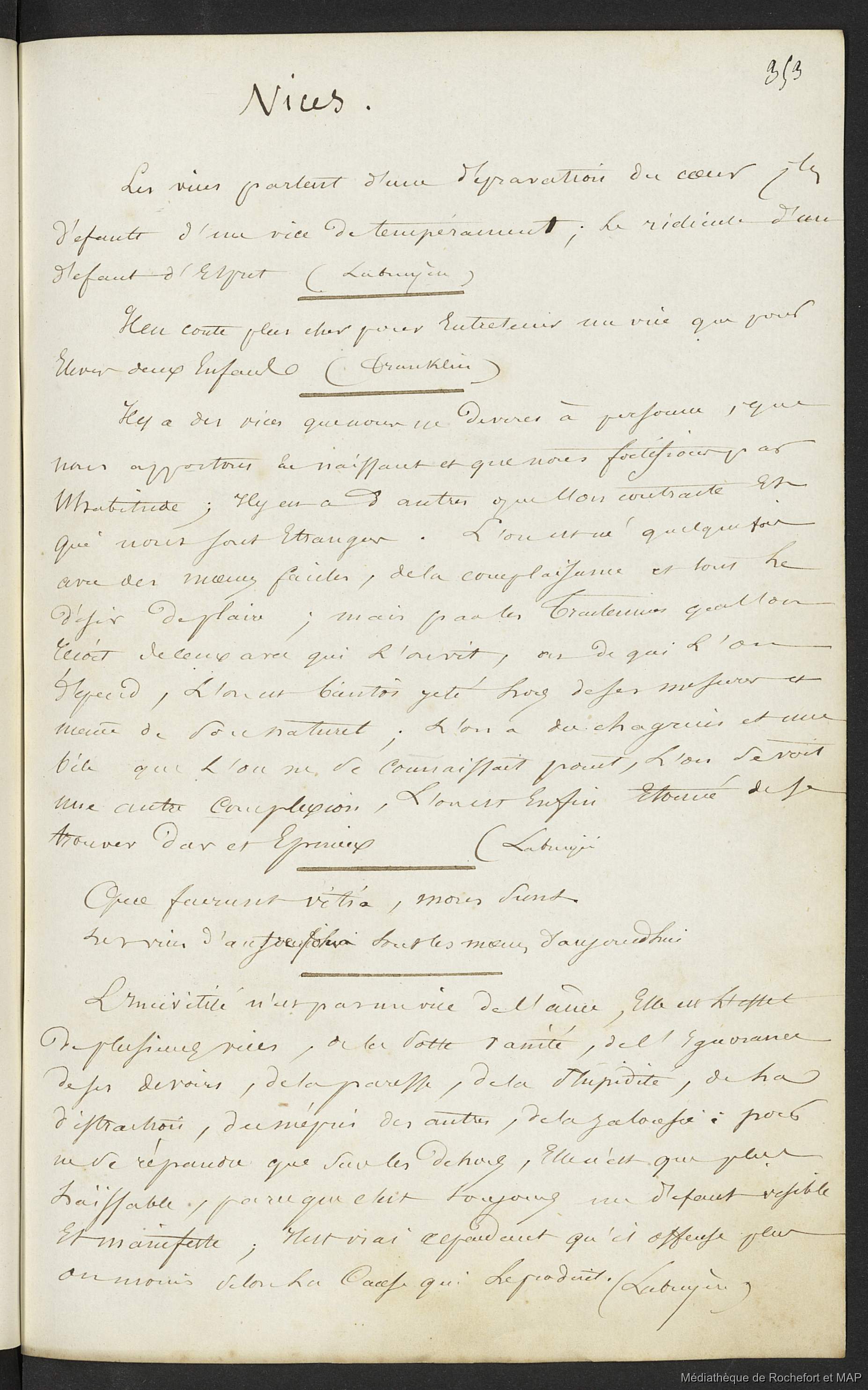 Lesson, Pierre-Adolphe [accessed: 2026/2/10]. "Maximes.- Rochefort.- 413 p. ; 24 cm. (B172996201_BM08082)" (Object Id: 151353). In