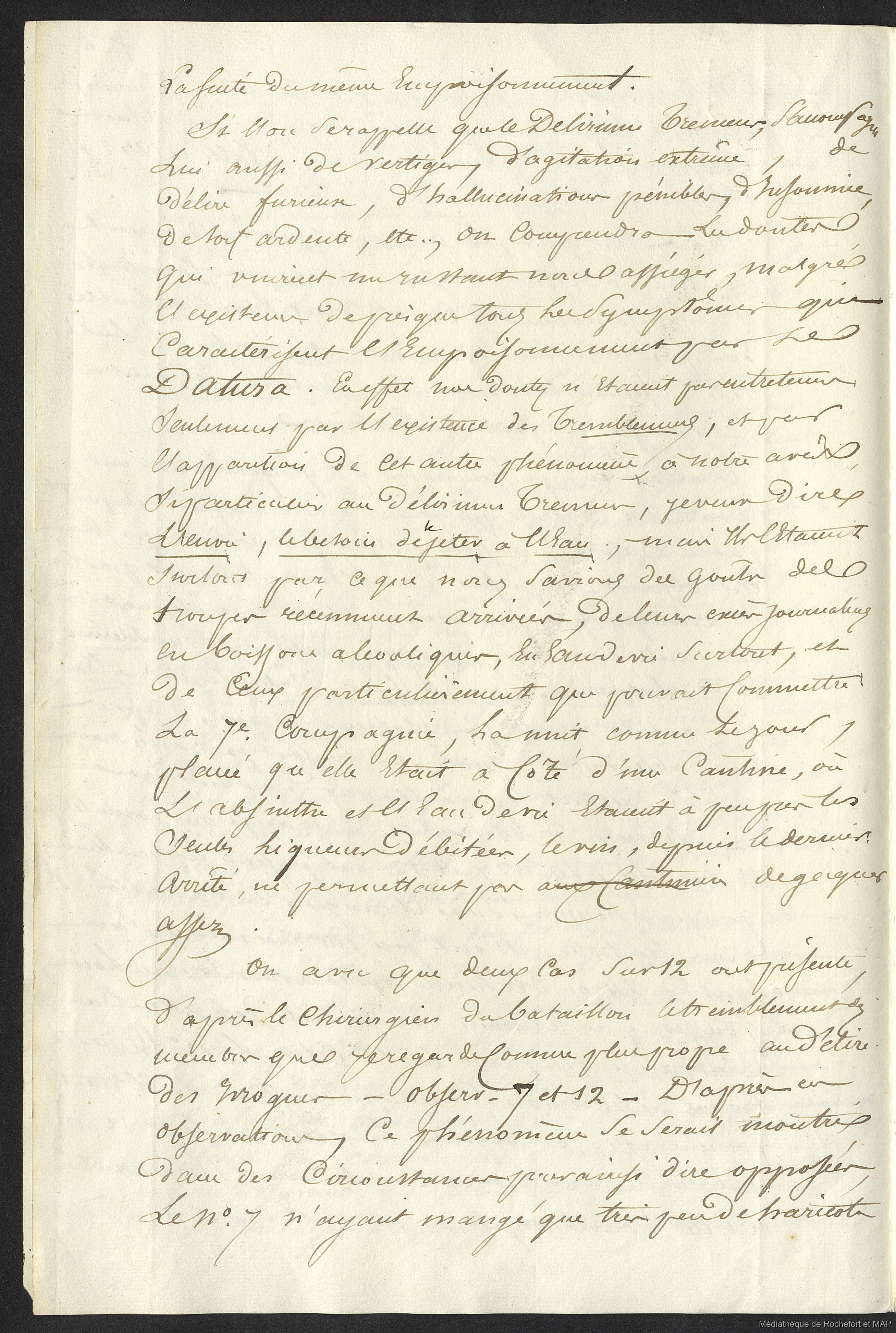 Récit d'un empoisonnement par la semence d'un Datura (Ceratocaula ou sanguinea ?) (B172996201_Ms00074-1) / Récit d'un empoisonnement par la semence d'un Datura (Ceratocaula ou sanguinea ?) (B172996201_Ms00074-1) / Lesson, Pierre-Adolphe /