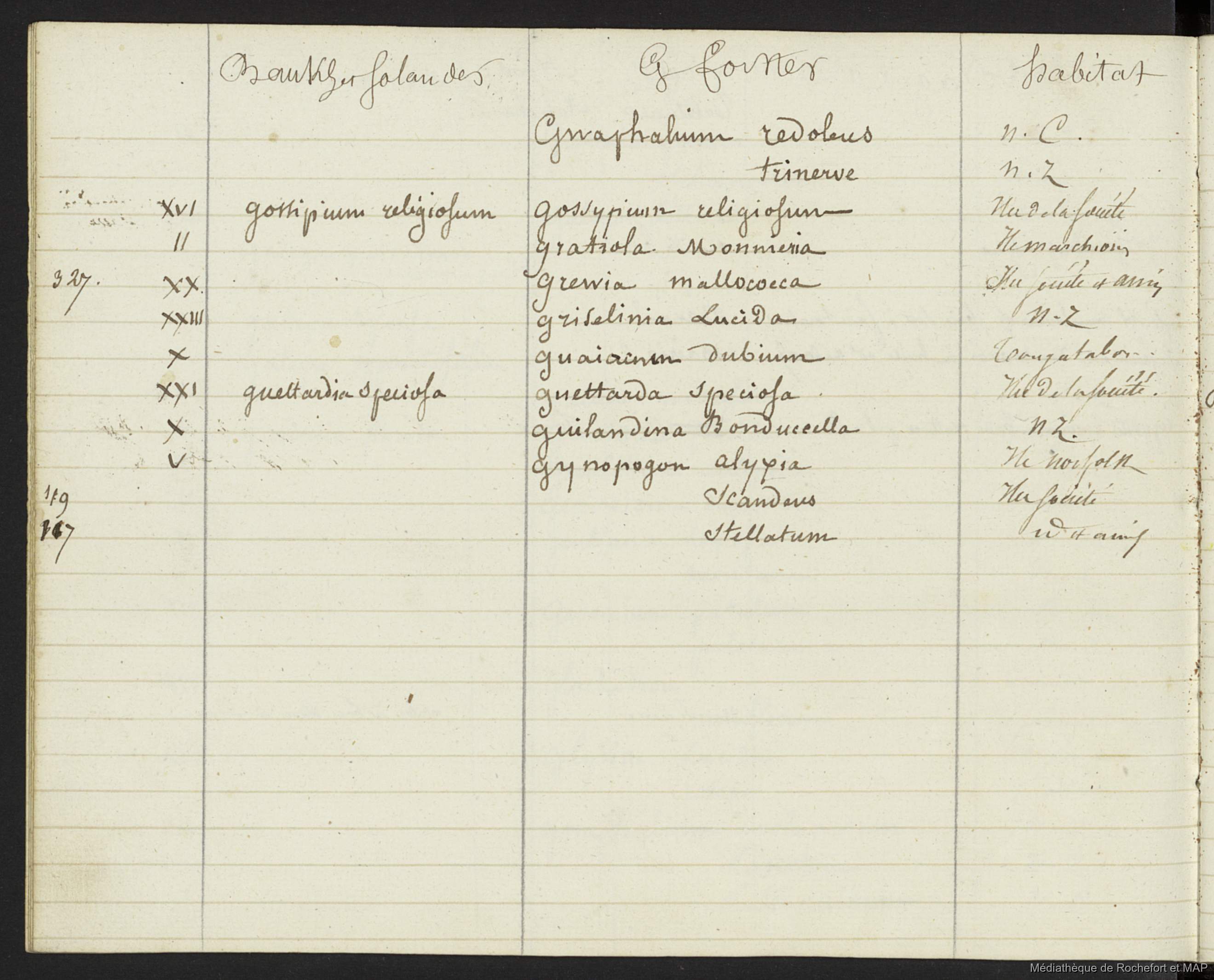 Quote this document Lesson, Pierre-Adolphe [accessed: 2026/1/26]. "Plantes indiquées par Parkinson et récoltées par Banks et Solander (B172996201_Ms00114)" (Object Id: 159478). In Plantes indiquées par Parkinson et récoltées par Banks et Solander (B172996201_Ms00114). ODSAS: https://www.odsas.net/object/159478.