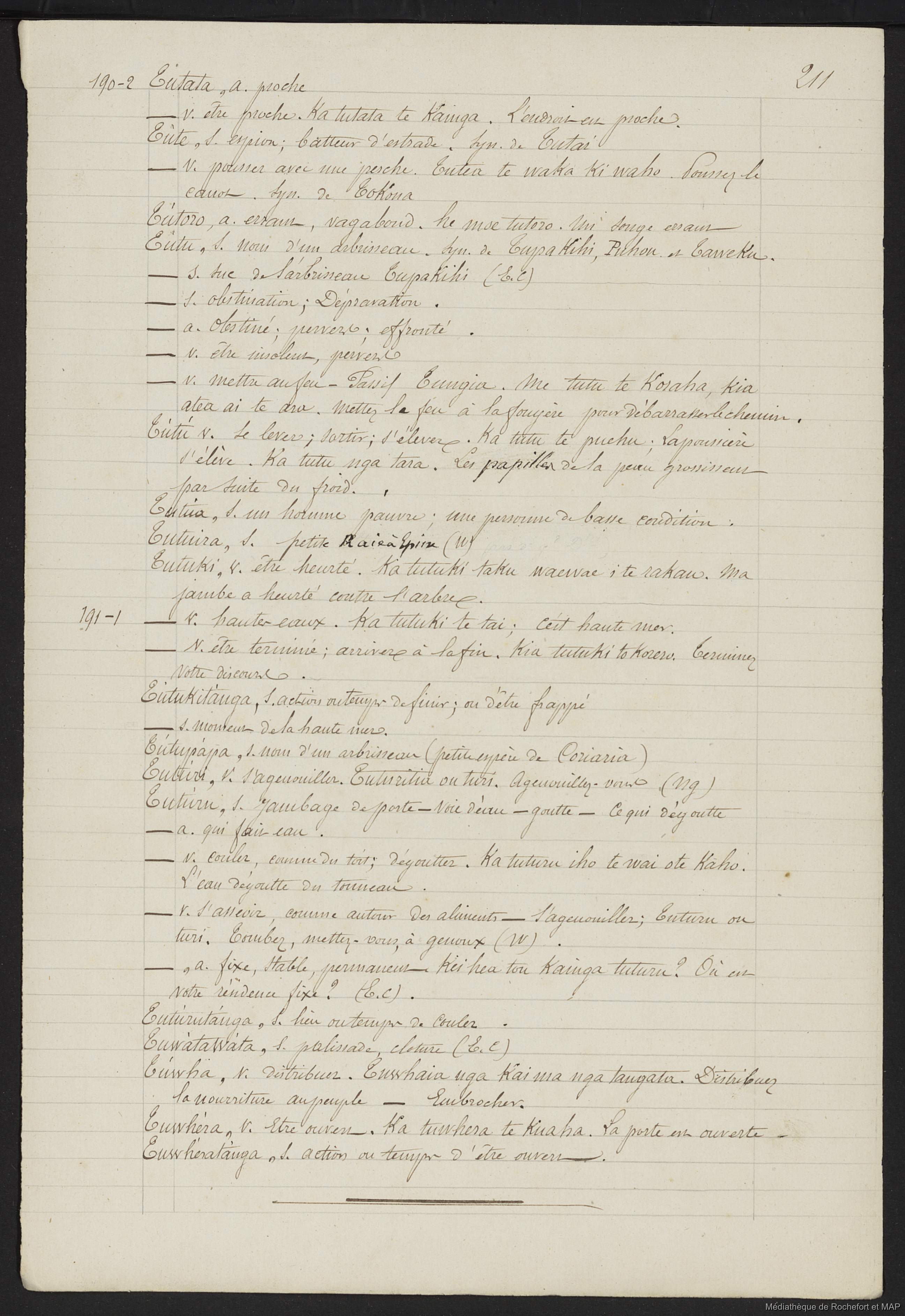 Quote this document Lesson, Pierre-Adolphe [accessed: 2026/2/11]. "Dictionnaire Français-nouveau Zélandais (B172996201_Ms00129)" (Object Id: 159780). In Dictionnaire Français-nouveau Zélandais (B172996201_Ms00129). ODSAS: https://www.odsas.net/object/159780.