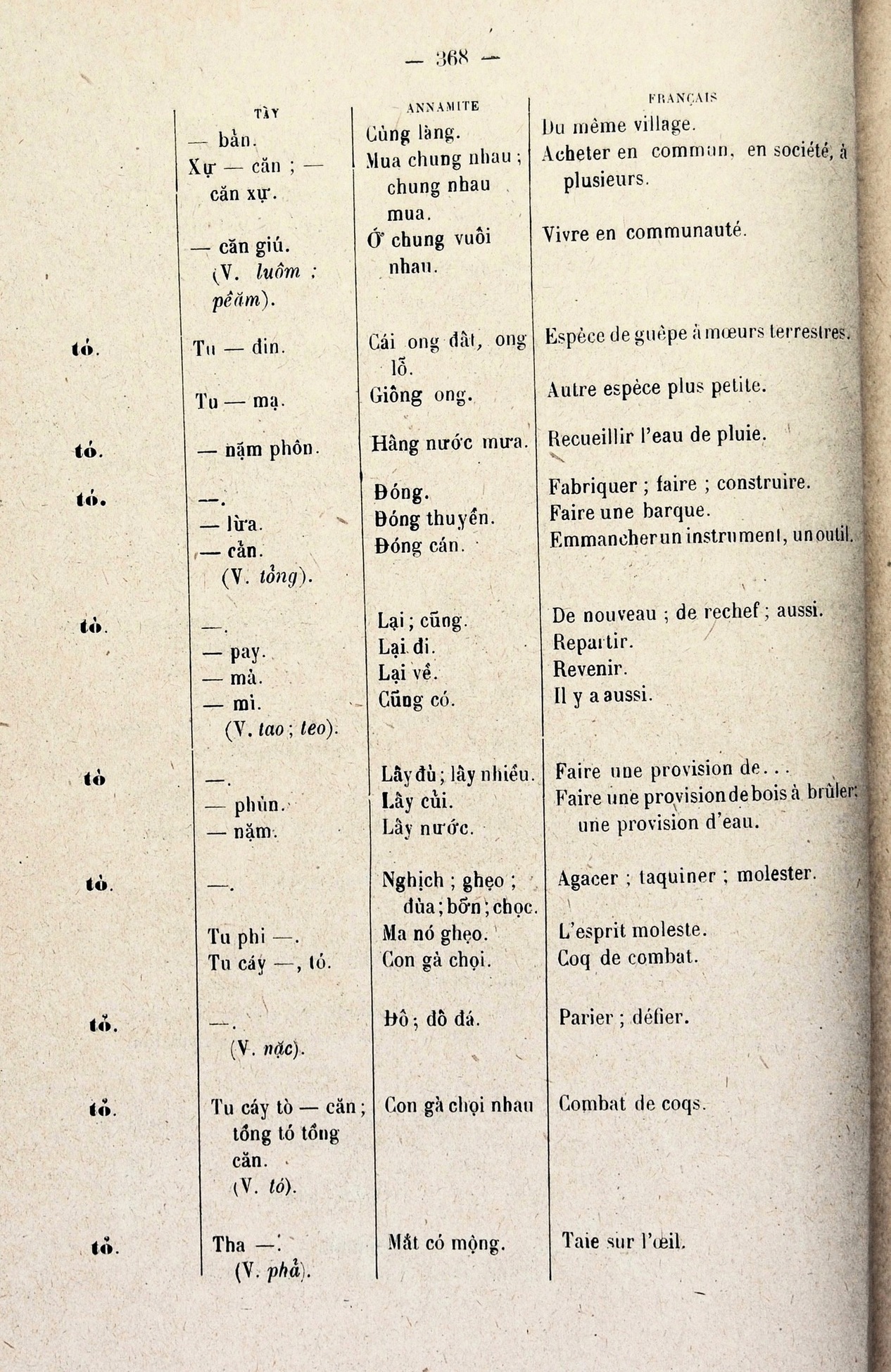 Dictionnaire Tay-Annamite-Français, F.M. Savina