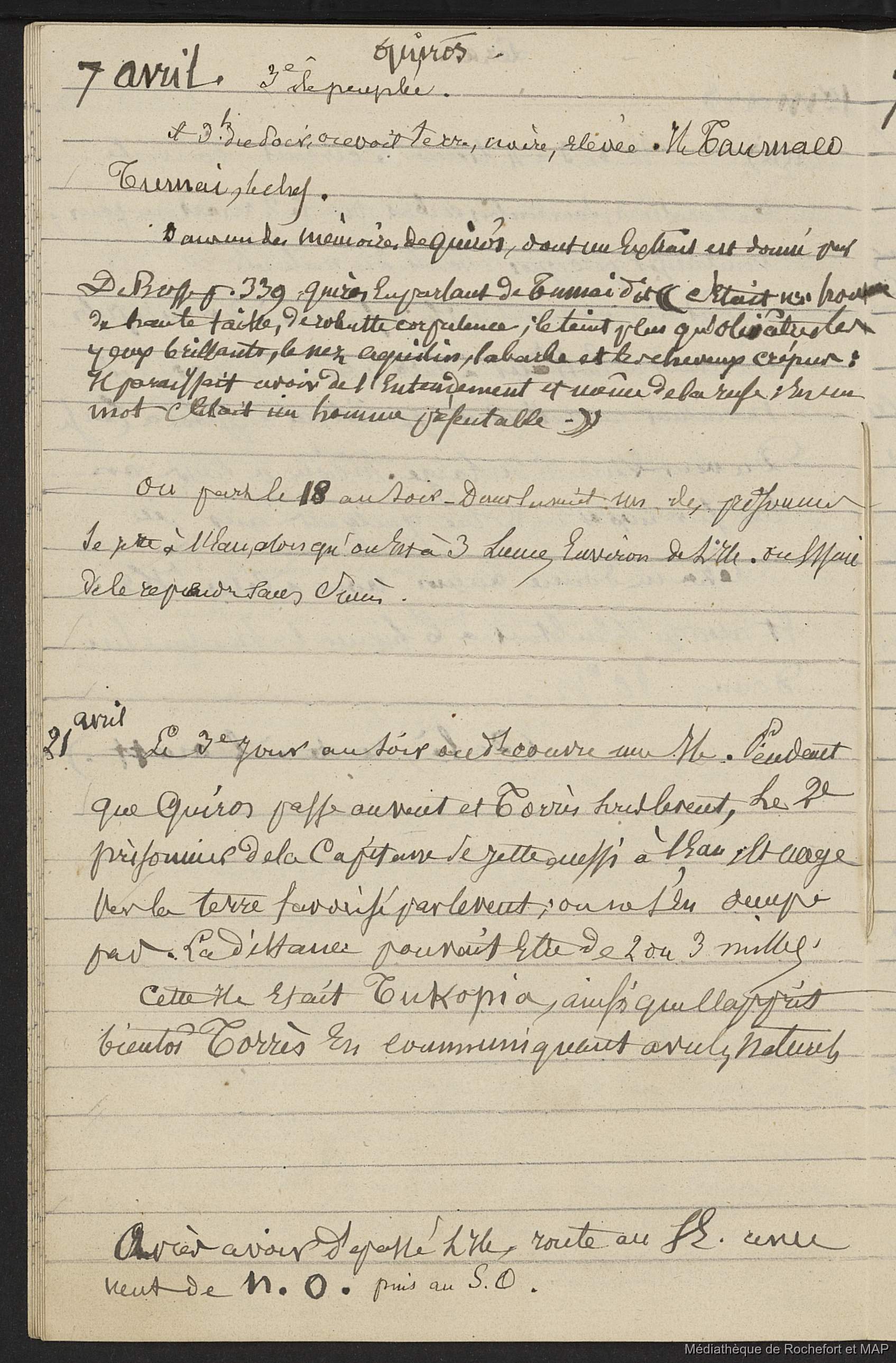 Récit du voyage de Quiros aux terres austriales en 1605 et 1606 (B172996201_Ms00165) / Récit du voyage de Quiros aux terres austriales en 1605 et 1606 (B172996201_Ms00165) / Lesson, Pierre-Adolphe /