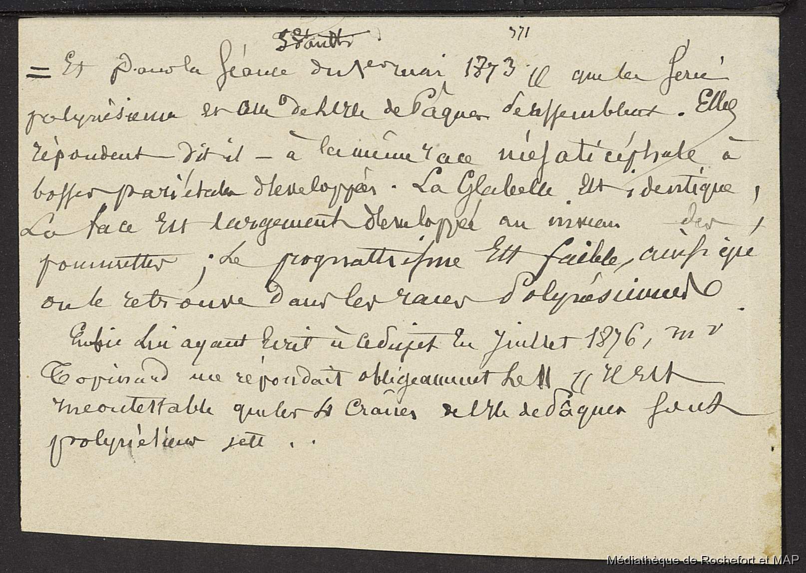 Lesson, Pierre-Adolphe [accessed: 2026/1/31]. "Théorie de migrations. Iles Marquises, Paumoutu, Mangareva, Pâques. (B172996201_Ms00179)" (Object Id: 165477). In