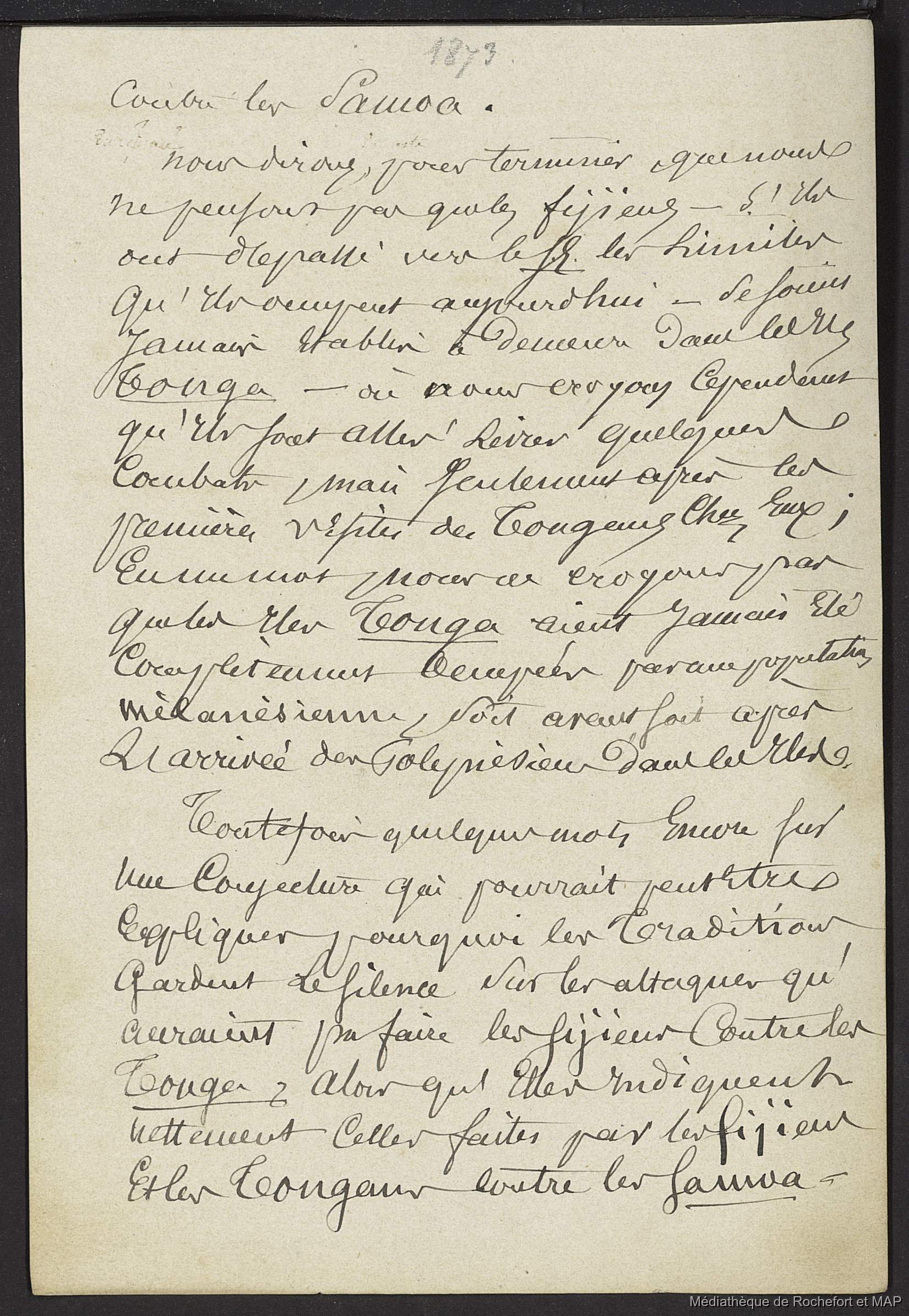 Théorie des migrations. Considération préliminaire sur les trois groupes, Samoa, Tunga et Fidji (B172996201_Ms00181) / Théorie des migrations. Considération préliminaire sur les trois groupes, Samoa, Tunga et Fidji (B172996201_Ms00181) / Lesson, Pierre-Adolphe /