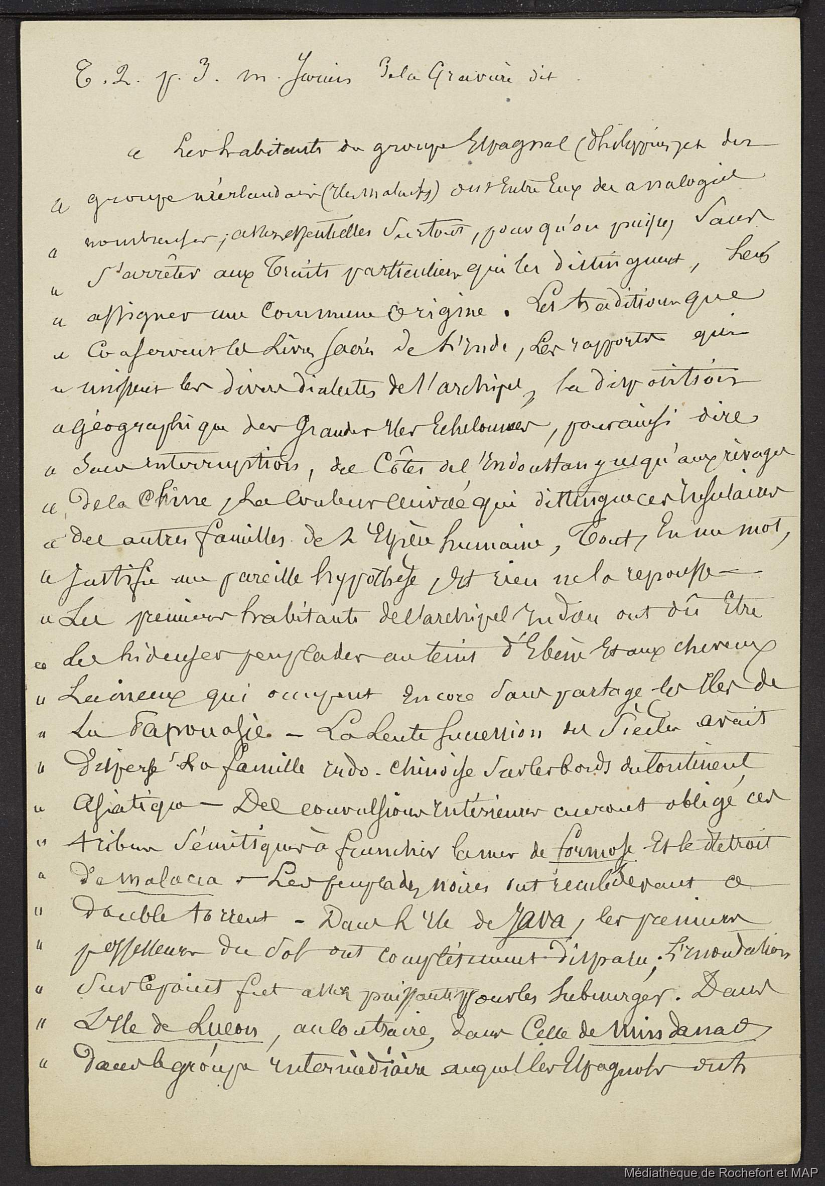 Lesson, Pierre-Adolphe [accessed: 2026/2/11]. "Théorie des migrations. Question Carolines et Mariannes ; Numération de la Nouvelle-Calédonie (B172996201_Ms00182)" (Object Id: 165632). In