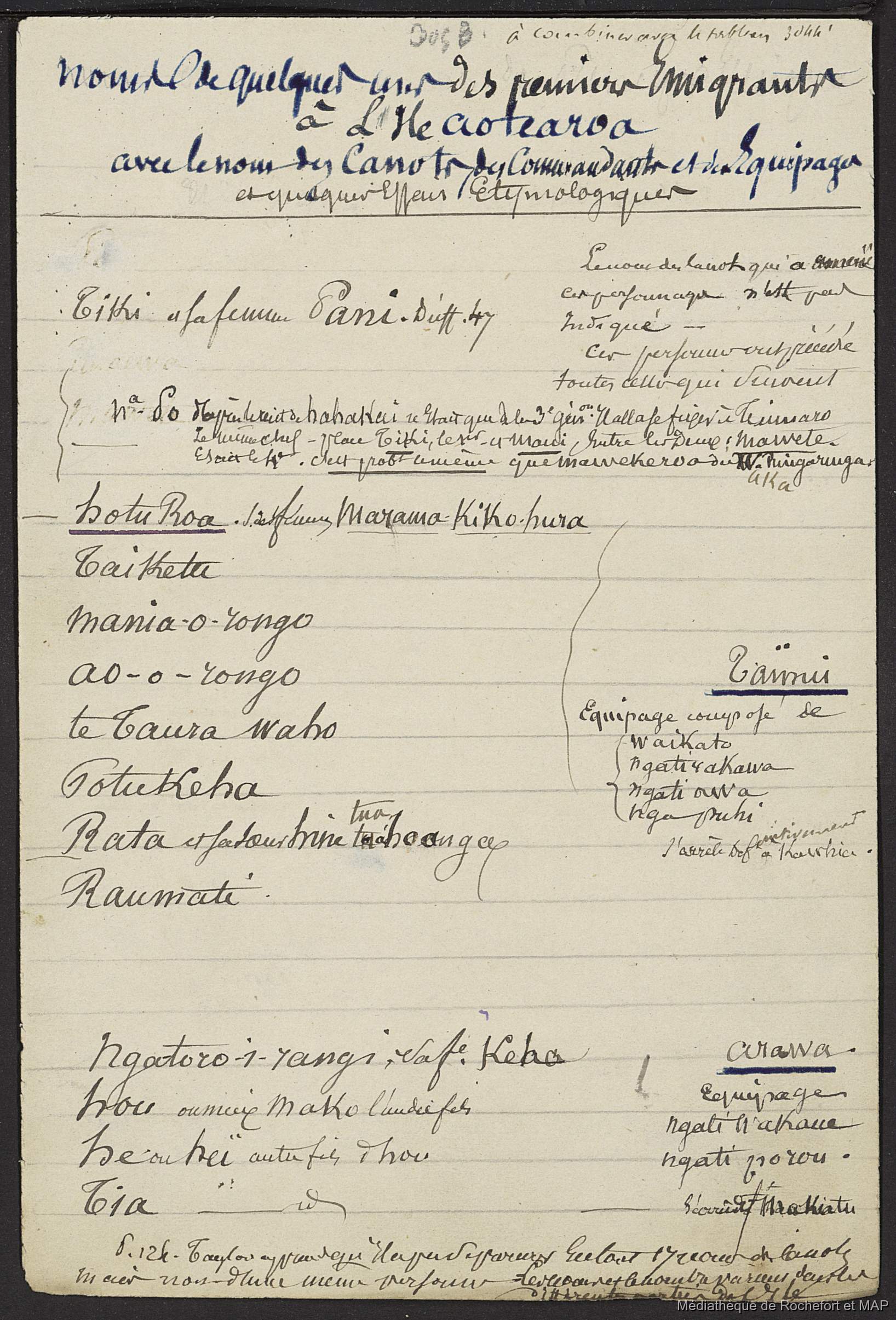 Lesson, Pierre-Adolphe [accessed: 2026/2/10]. "Théorie des migrations. Système rationnel de l'auteur, recherche de l'hawaïki (B172996201_Ms00186)" (Object Id: 165833). In