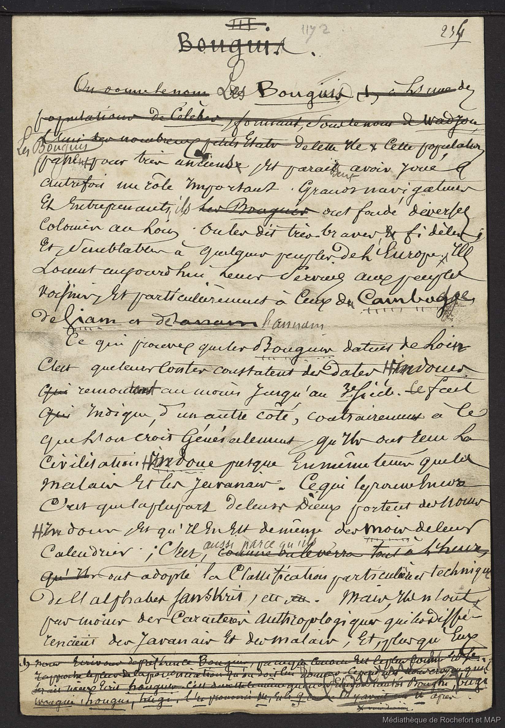 Théorie des migrations. Malaisiens, Battaks, Dayaks, banguis, alfourous; Conclusion de la 2ème grande théorie. (B172996201_Ms00189) [Set(s) 1443]