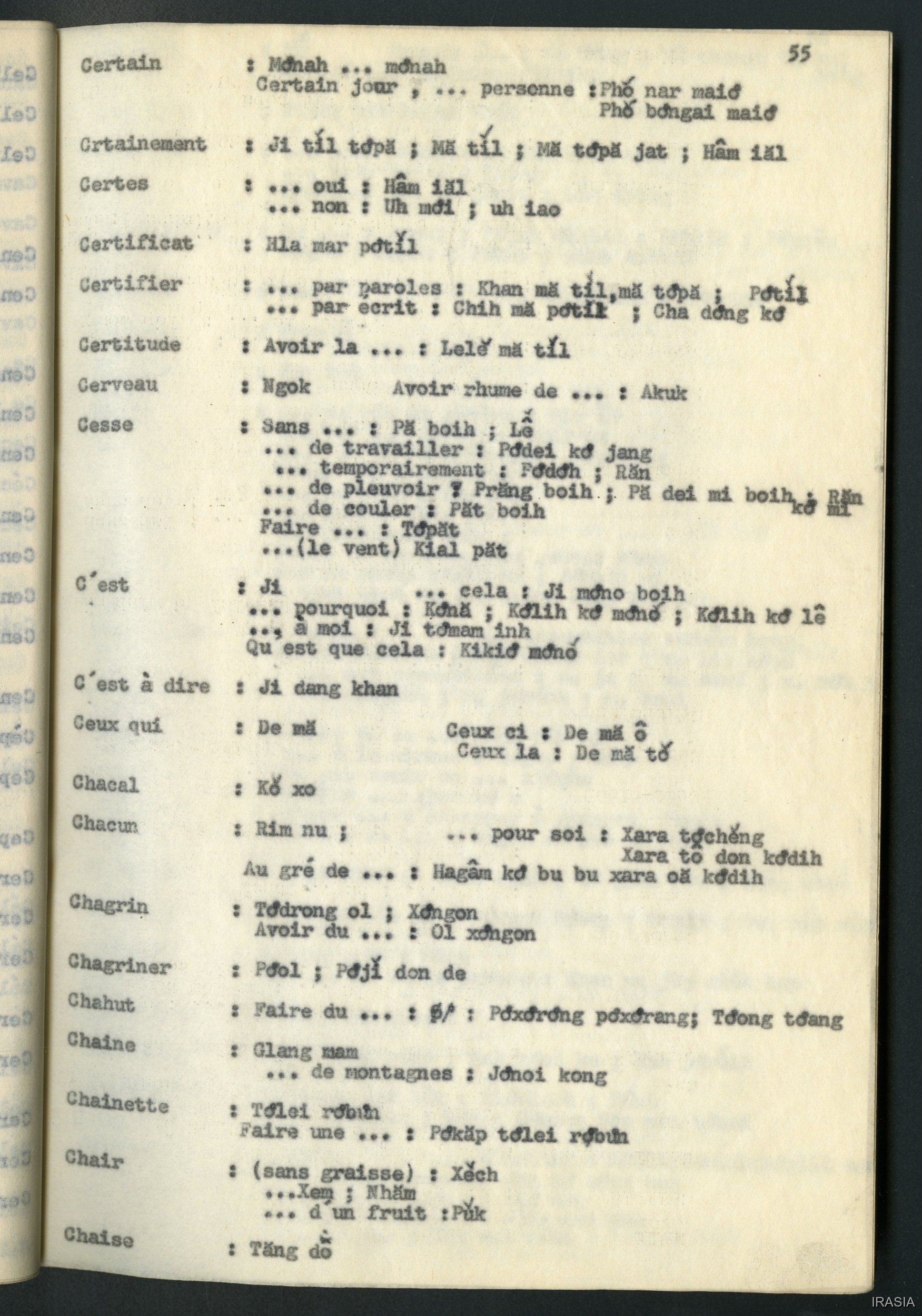 Léger, Daniel 1967 [accessed: 2026/2/5]. "Lexique : dictionnaire Français - Bahnar AD" (Object Id: 171360). In