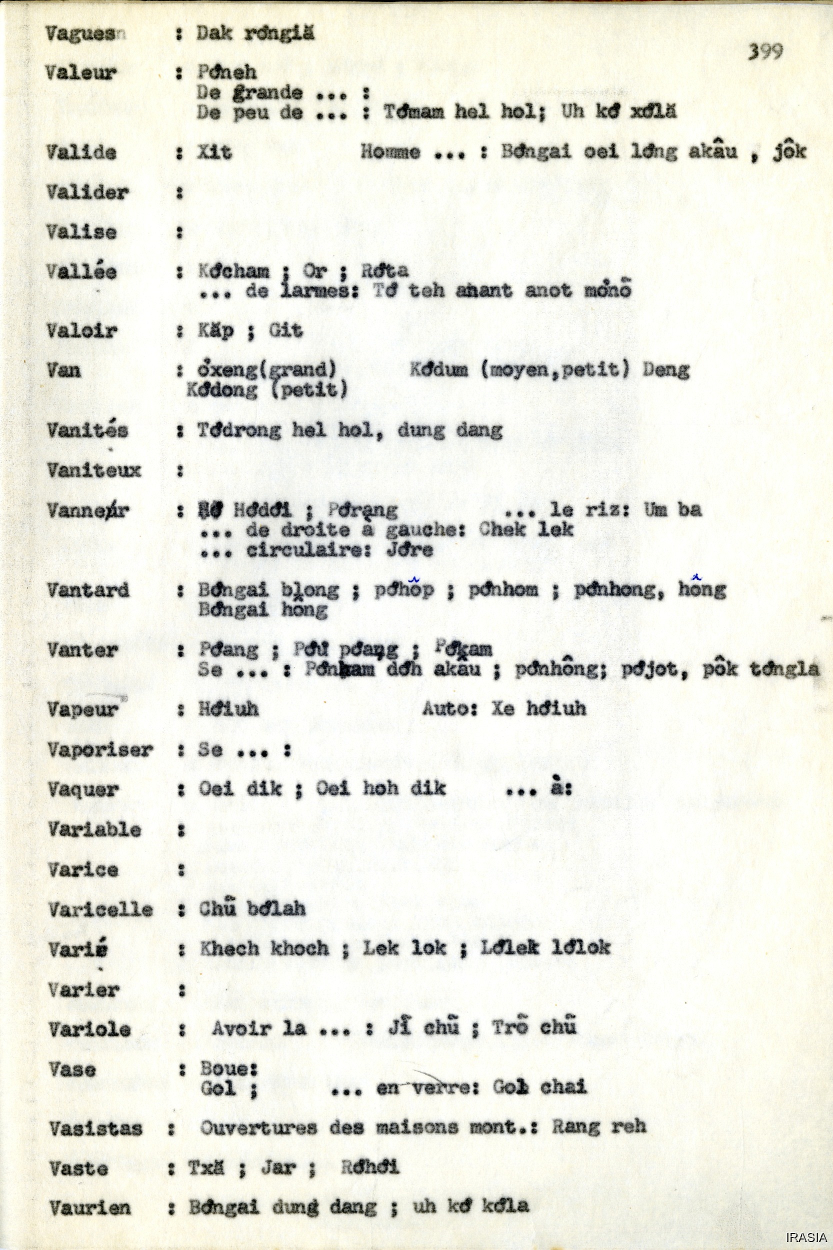 Quote this document Léger, Daniel [accessed: 2026/2/3]. "Lexique : dictionnaire Français - Bahnar OZ" (Object Id: 171714). In Lexique : dictionnaire Français - Bahnar OZ. ODSAS: https://www.odsas.net/object/171714.